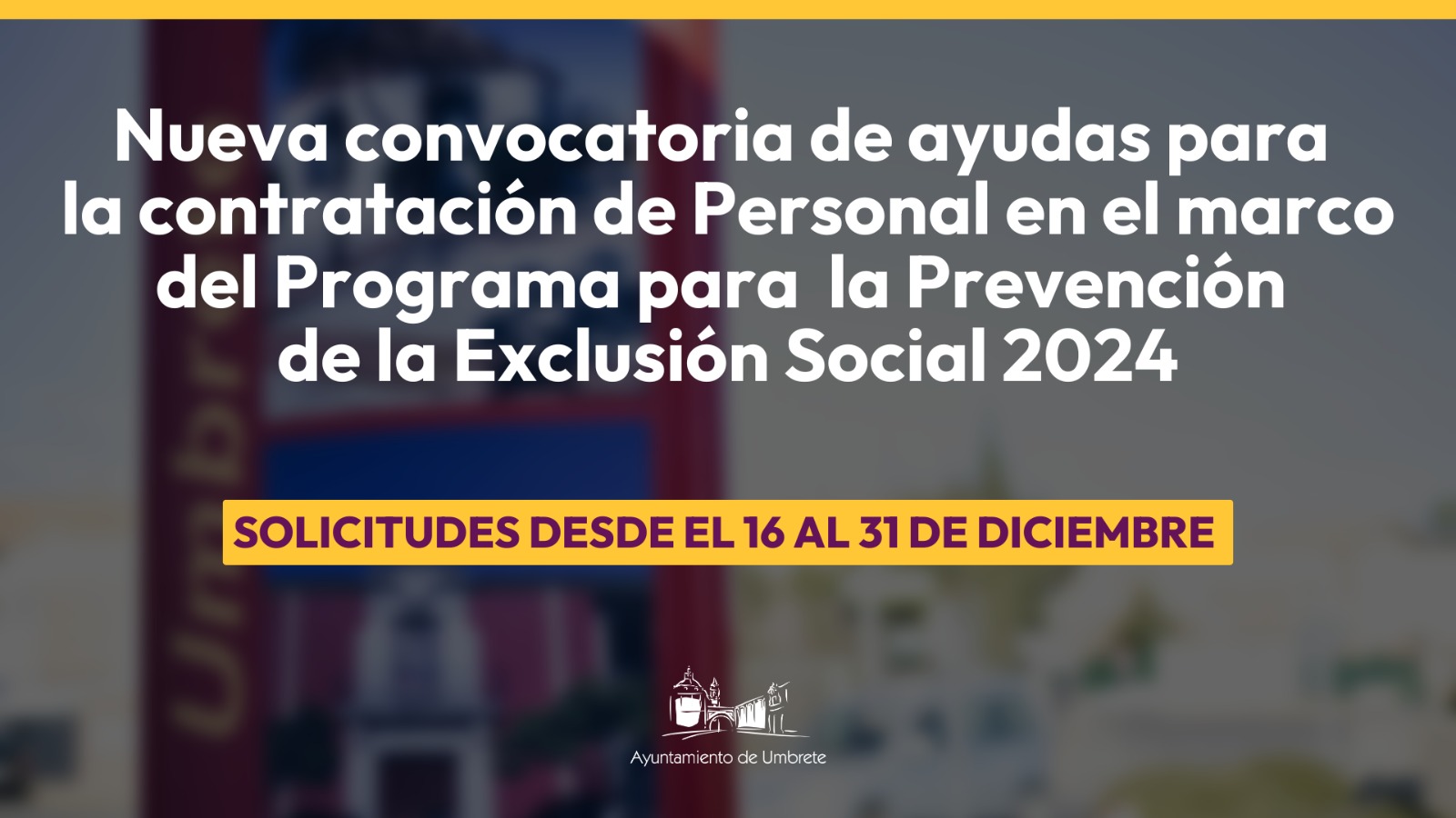 A partir del 17 de diciembre, se abre una nueva convocatoria para la contratación de personal dentro del Programa para la Prevención de la Exclusión Social a través del Empleo Temporal 2024. Esta convocatoria está dirigida a personas en situación de exclusión social o riesgo de estarlo, con el objetivo de apoyar su inclusión mediante el acceso temporal al empleo.