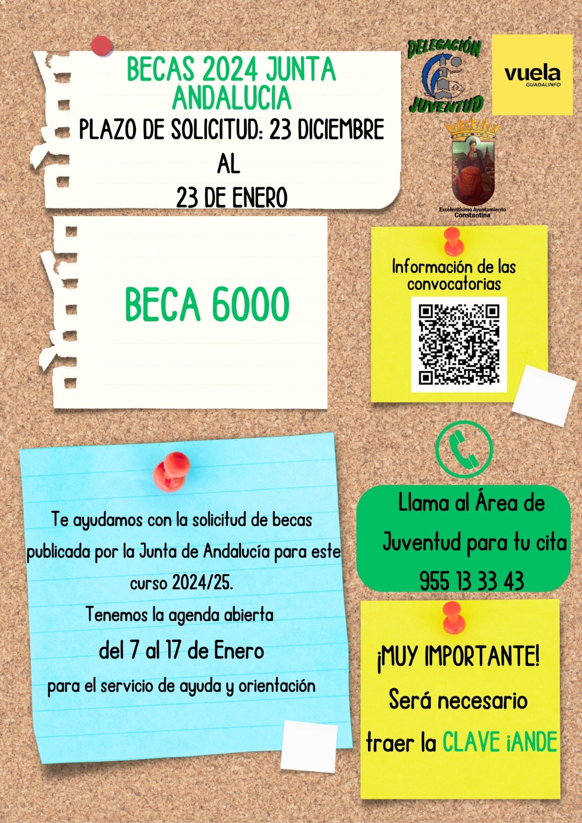 Desde la Delegación de Juventud nos informan que se ha abierto el plazo de solicitudes de las becas y ayudas al estudio de la Junta de Andalucía BECA 6000 , para este curso escolar 2024/2025