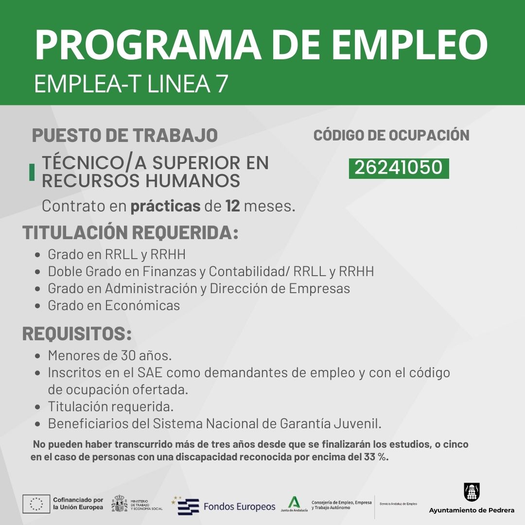 El primer puesto ofertado es el de técnico/a superior en Recursos Humanos (código de ocupación: 26241050). Las personas interesadas deben solicitar cita en la Oficina del SAE llamando al teléfono 955 62 56 95 en horario de 8:00 a 20:00 horas, de lunes a viernes, o a través de la aplicación móvil AppSAE del Servicio Andaluz de Empleo.