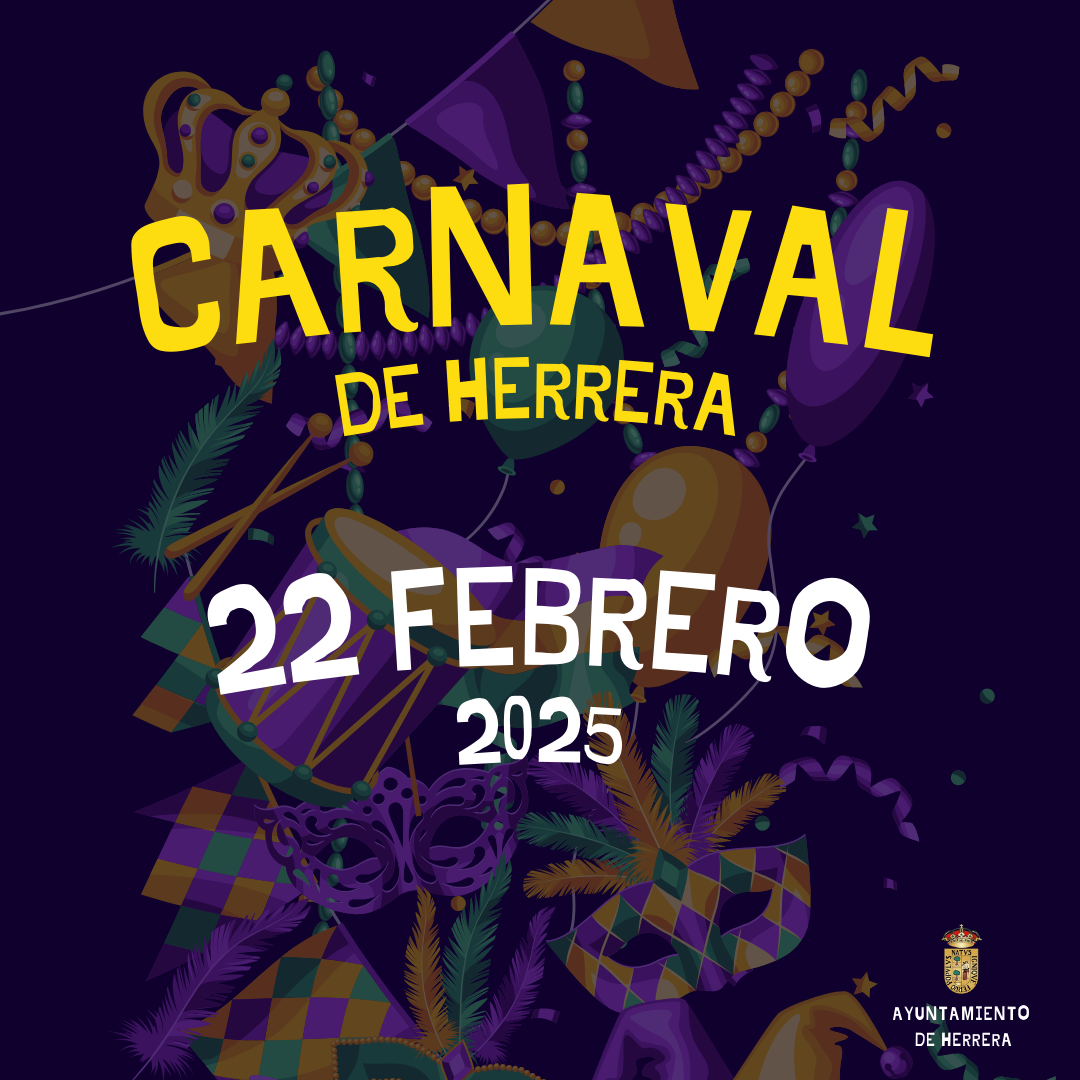 La concejalía de Cultura del Ayuntamiento de Herrera ha fijado la celebración del desfile de Carnaval para el sábado, 22 de febrero. Próximamente se publicarán las bases del concurso, el itinerario y hora de comienzo del desfile y otros detalles de interés.