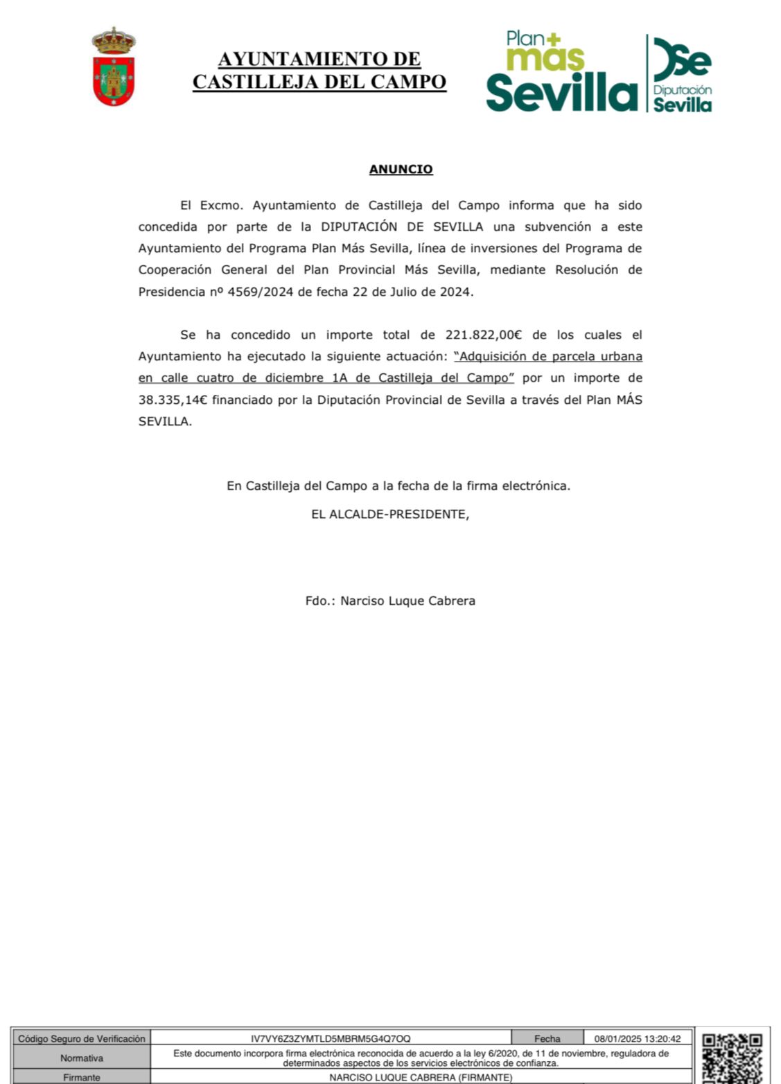 El Excmo. Ayuntamiento de Castilleja del Campo informa que ha sido
