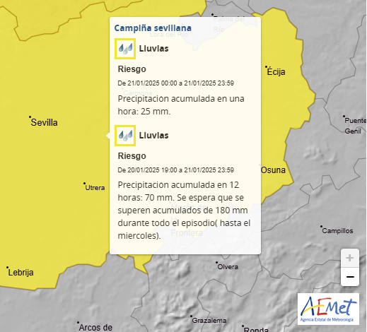 La Agencia Estatal de Meteorología (Aemet) ha activado hoy martes 21 de enero el aviso de nivel amarillo por lluvias.