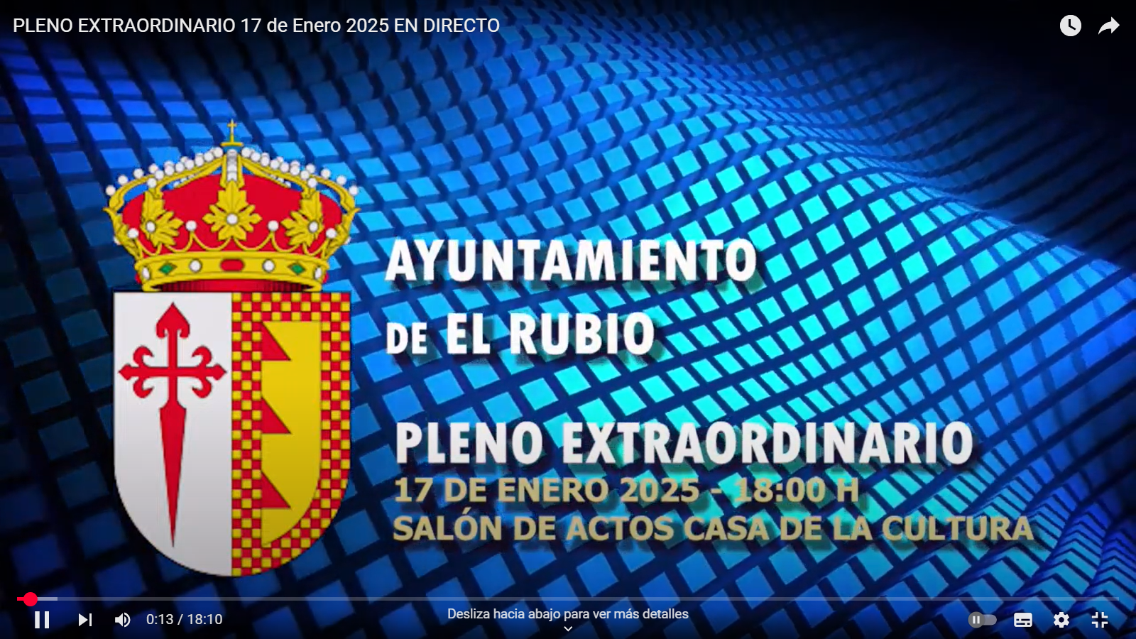 Imagen Ubicación Categoría noticia Ciudadanía Mostrar en el carrusel de la sección No Fecha Vie, 17/01/2025 - 11:33 Más información http://www.elrubio.es/es/actualidad/noticias/PLENO-EXTRAORDINARIO-17-de-Enero-2…