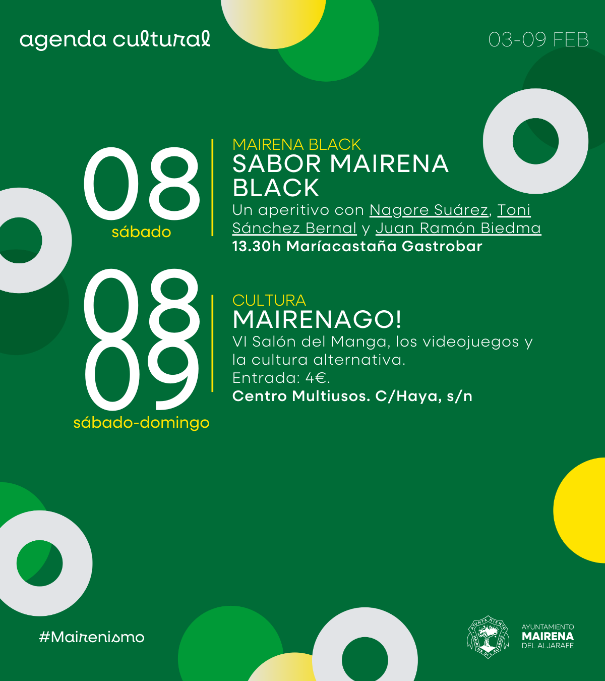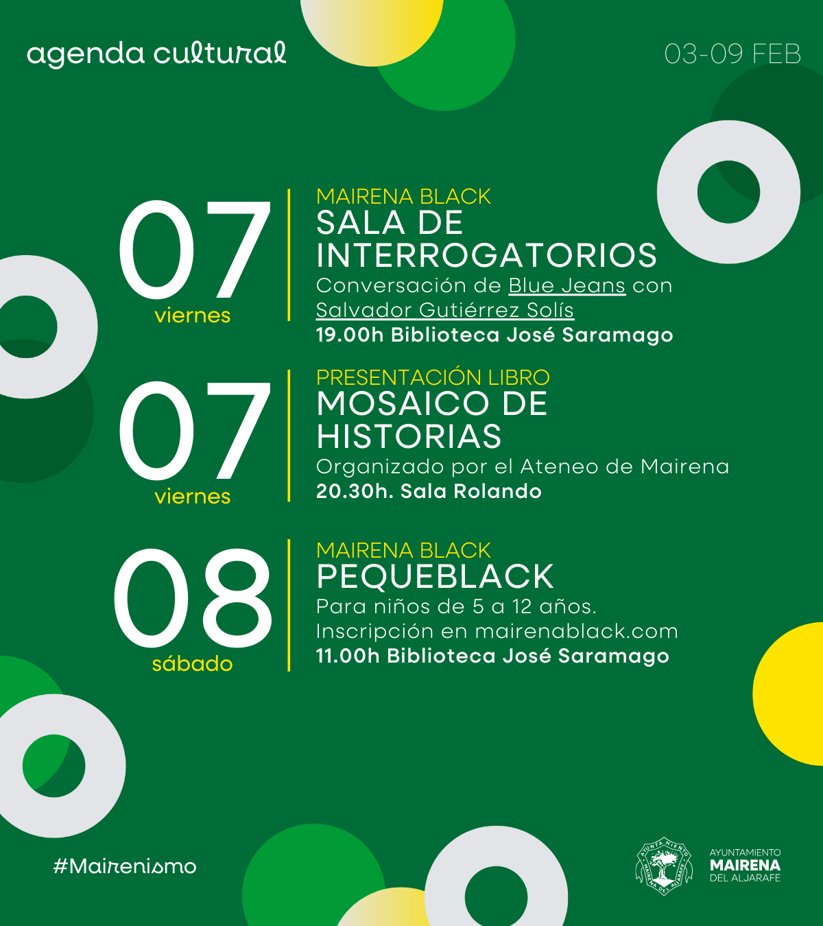 Fecha inicio Dom, 09/02/2025 - 22:00 Fecha fin Dom, 09/02/2025 - 22:00 Imágenes Ubicación Categoría evento Cultura Mostrar en el carrusel de la sección No Más información http://www.mairenadelaljarafe.es/es/actualidad/eventos/Del-3-al-9-de-febrero-ag…
