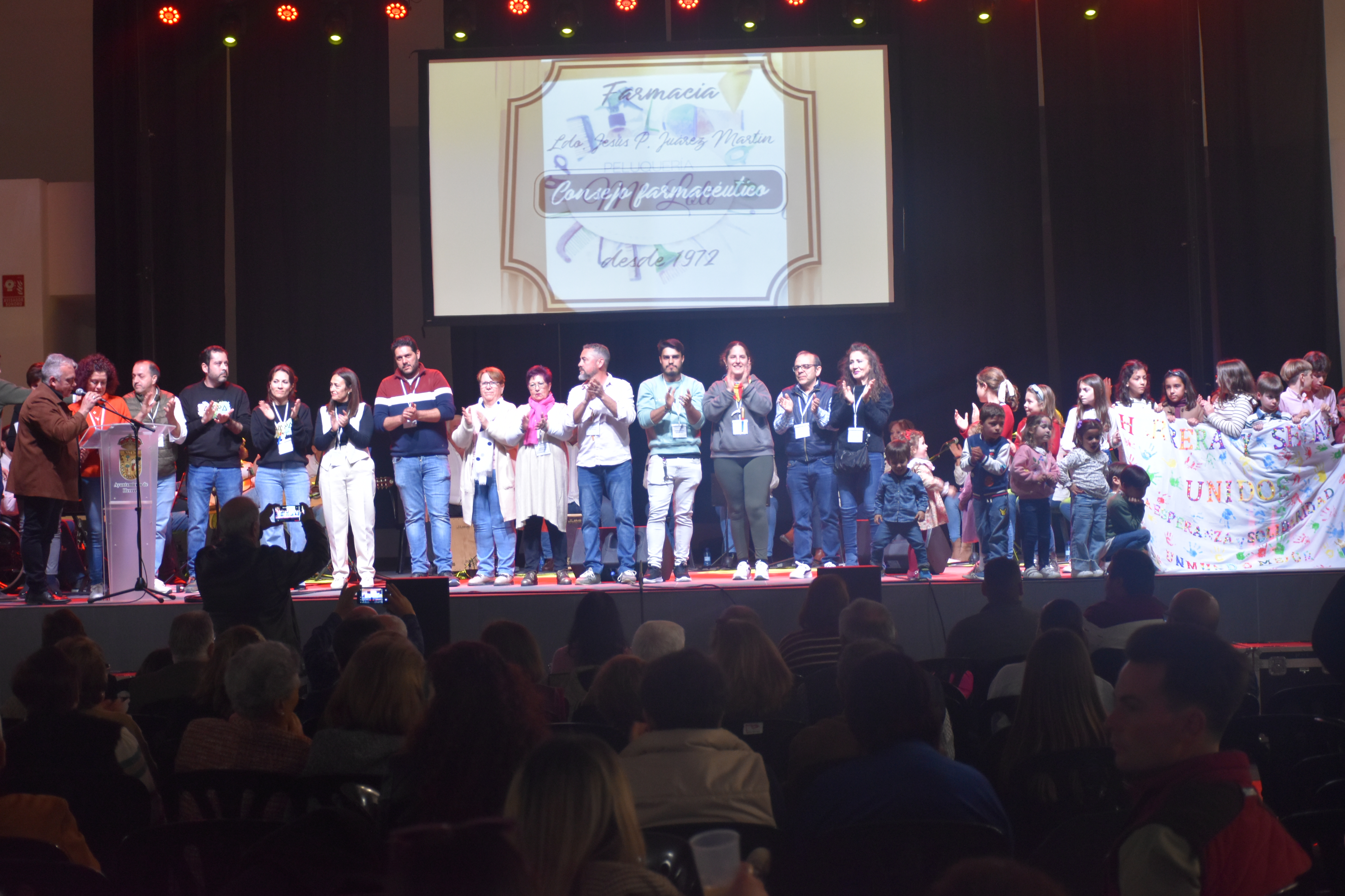 En el transcurso de la Gala Solidaria se reconoció la labor del herrereño Sergio Gómez Ruiz, miembro de la UME que trabajó y trabaja actualmente en la Comunidad Valenciana tras el paso de la DANA. También hubo momento para poner en valor el trabajo de todos los voluntarios por su dedicación altruista en el evento, cuya comisión organizadora, como parte visible, fue invitada a subir al escenario.