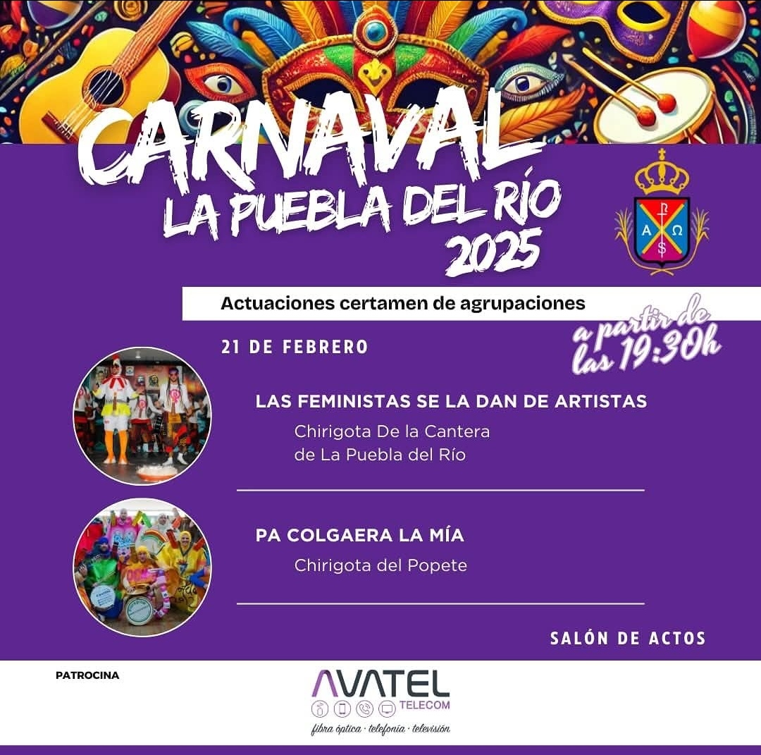 Fecha inicio Vie, 21/02/2025 - 19:30 Fecha fin Vie, 21/02/2025 - 21:00 Imágenes Ubicación Categoría evento Cultura Mostrar en el carrusel de la sección No Más información http://www.lapuebladelrio.es/es/actualidad/eventos/I-Certamen-de-Agrupaciones-d…