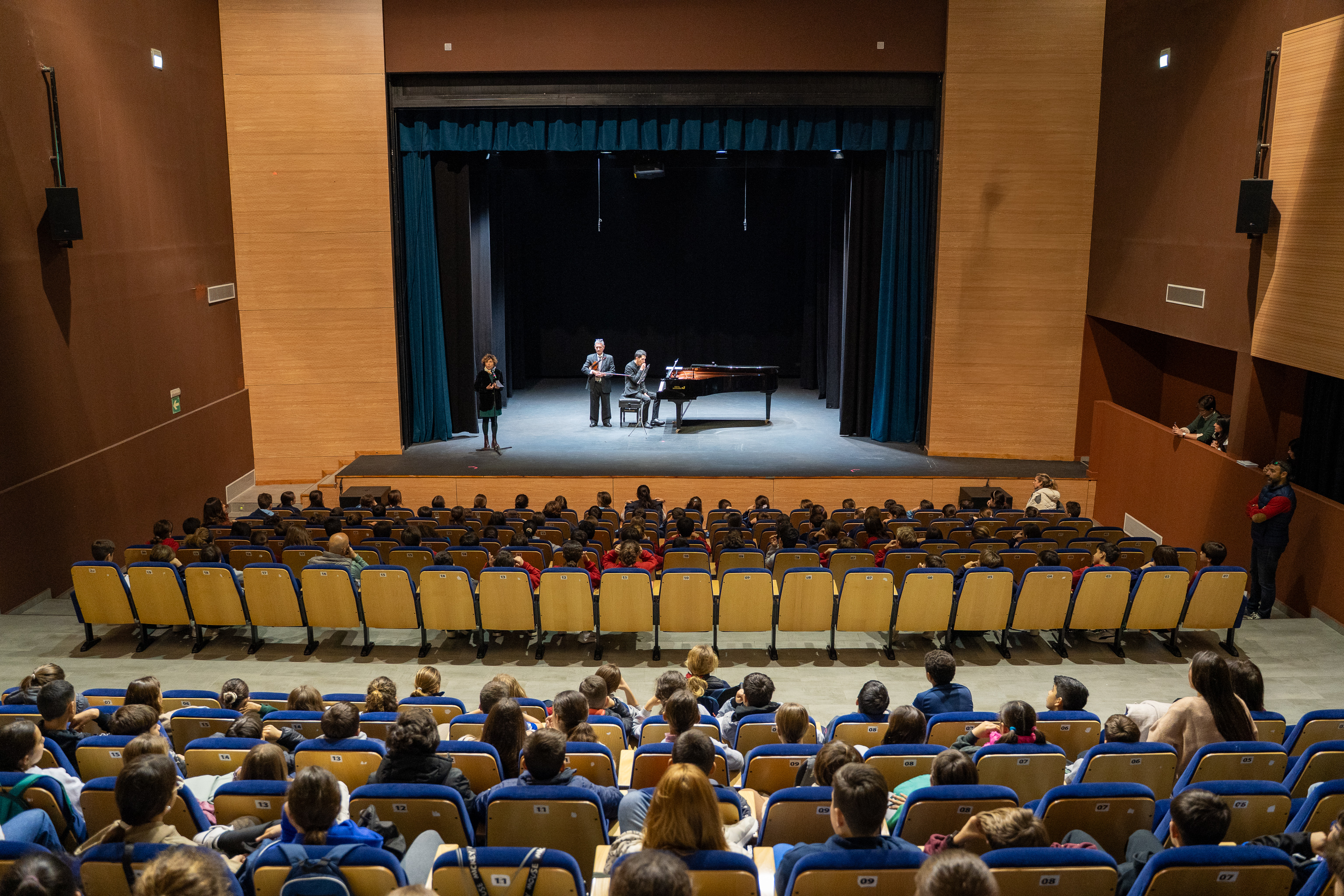 El programa "Mairena en Clave" está dirigido a alumnos de sexto de primaria y se desarrolla en distintas sesiones adaptadas a los grupos escolares. Durante la actividad, los estudiantes exploran conceptos musicales de manera lúdica y vivencial, con el objetivo de despertar su interés y comprensión de la música.