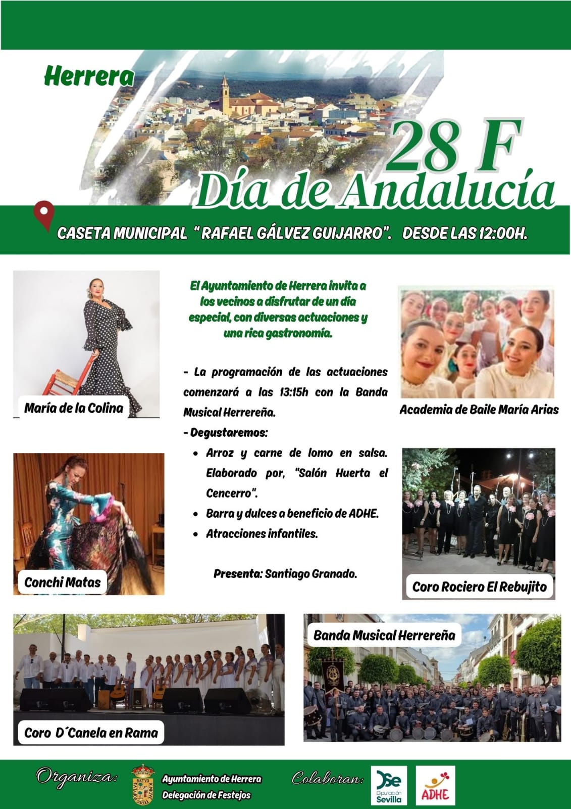 Programación para el Día de Andalucía, que tendrá lugar este viernes, 28 de febrero. Las distintas actividades se celebrarán en la Caseta Municipal "Rafael Gálvez Guijarro" a partir de las 12:00.