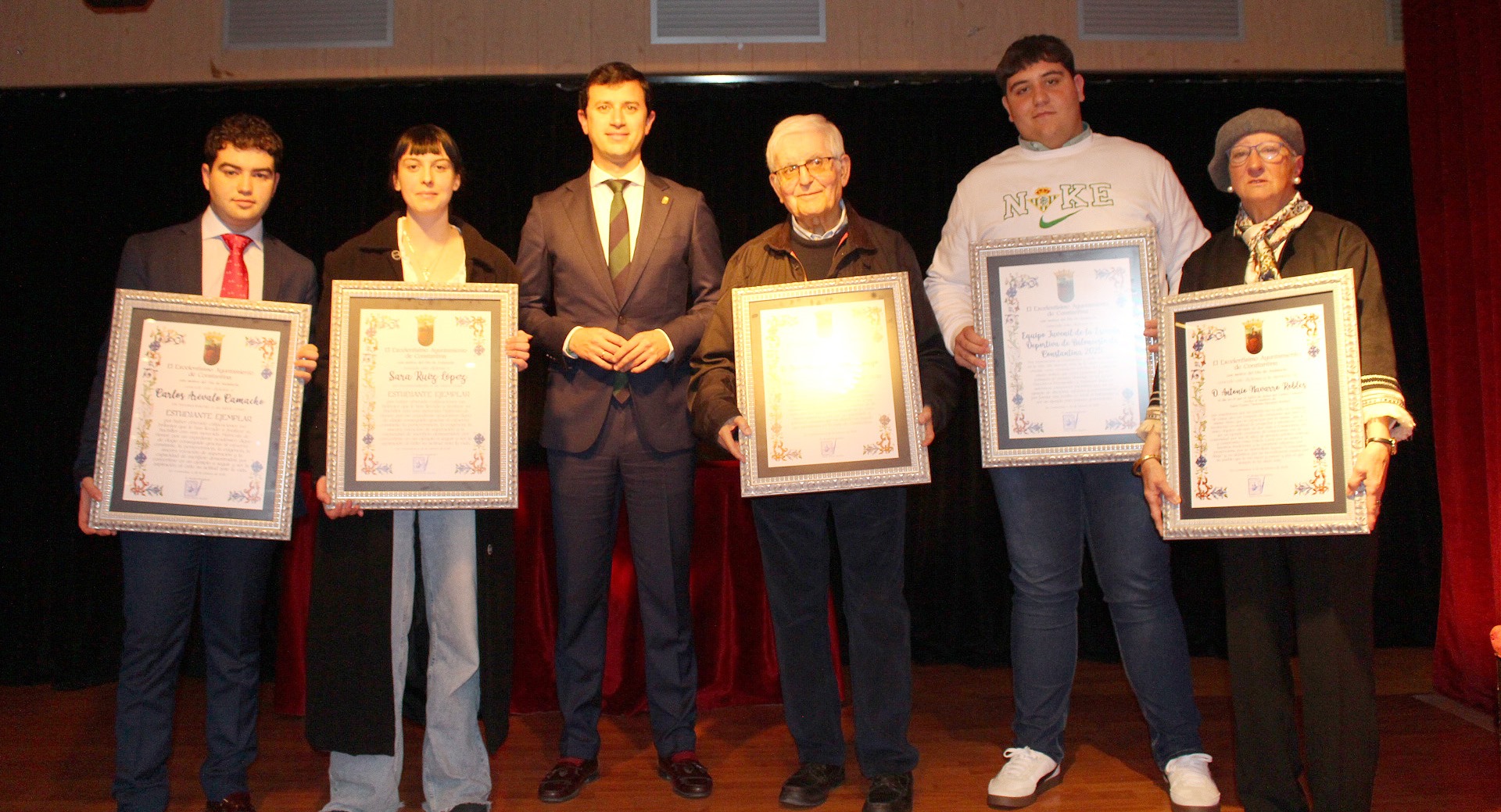 •RECONOCIMIENTO NUESTRO SACERDOTE, PÁRROCO Y PROFESOR DE RELIGIÓN D. José Mª Melendo Tamayo •RECONOCIMIENTO A UNA VIDA ENTREGADA A SU PASIÓN: CONSTANTINA Y NOMBRAMIENTO DEL SALÓN-TEATRO "ANTONIO NAVARRO ROBLES" EN SU MEMORIA D. Antonio Navarro RoblesEl acto lo concluía la entrega de un diploma y bandera de Andalucía a los jóvenes de nuestra localidad que este año han cumplido o van a cumplir su mayoría de edad, un acontecimiento simbólico para recordarles a todos ellos los derechos y deberes que adquieren en esta nueva etapa importante, vital y esencial en la vida de cada persona. Agradecemos a todos los jóvenes que quisieron acompañarnos en este modesto homenaje su asistencia.