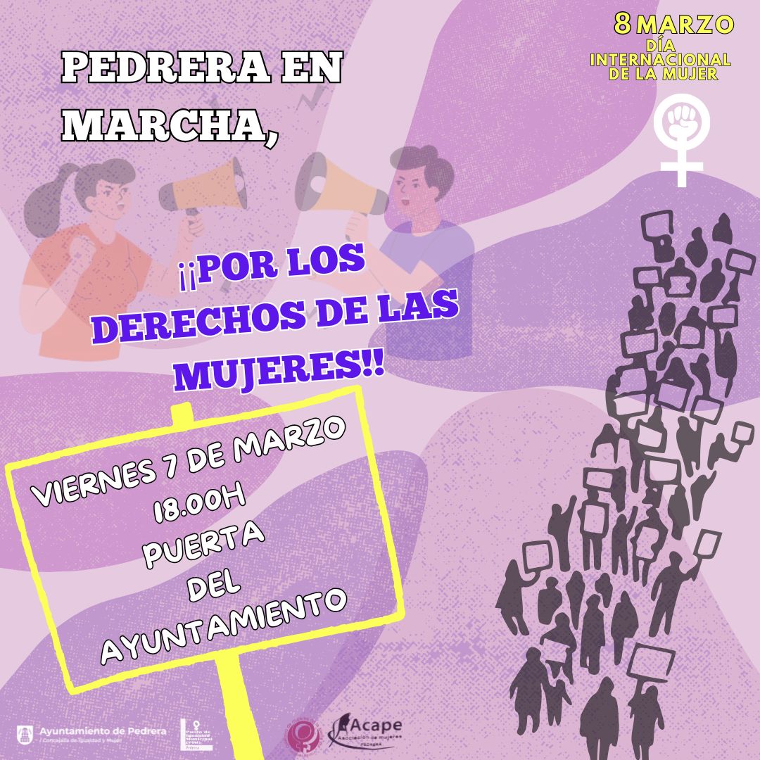 El próximo viernes, 7 de marzo, con motivo del Día Internacional de la Mujer, vuelven las marchas y concentraciones del #8M. Pedrera acogerá, como viene siendo habitual, una marcha y concentración por la tarde.