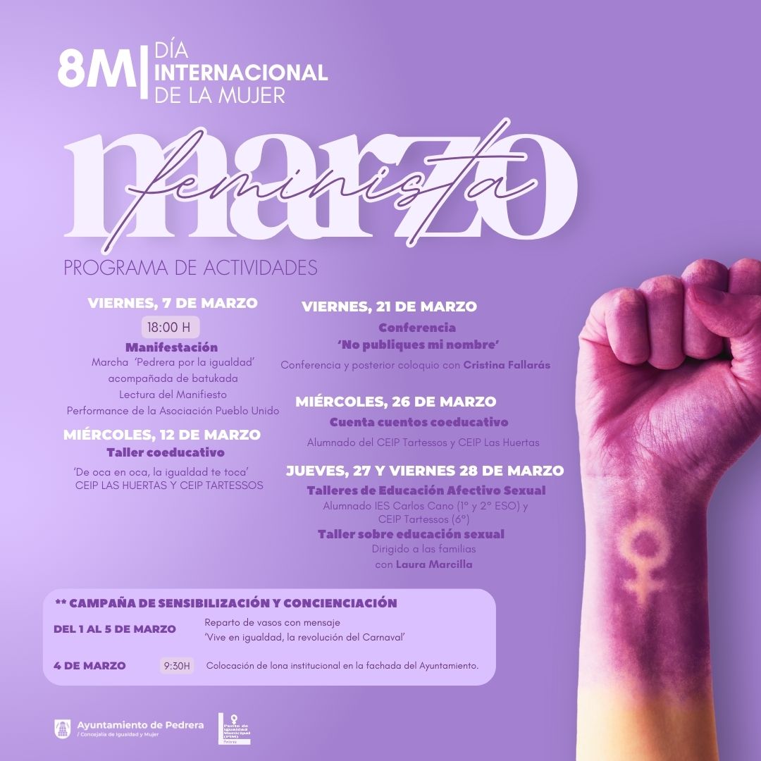 La concejalía de igualdad y mujer ha presentado la programación en torno a la conmeoración del 8 de marzo, Día Internacional de la Mujer, que incluye una serie de actividades diseñadas para sensibilizar a la ciudadanía sobre la igualdad de género.