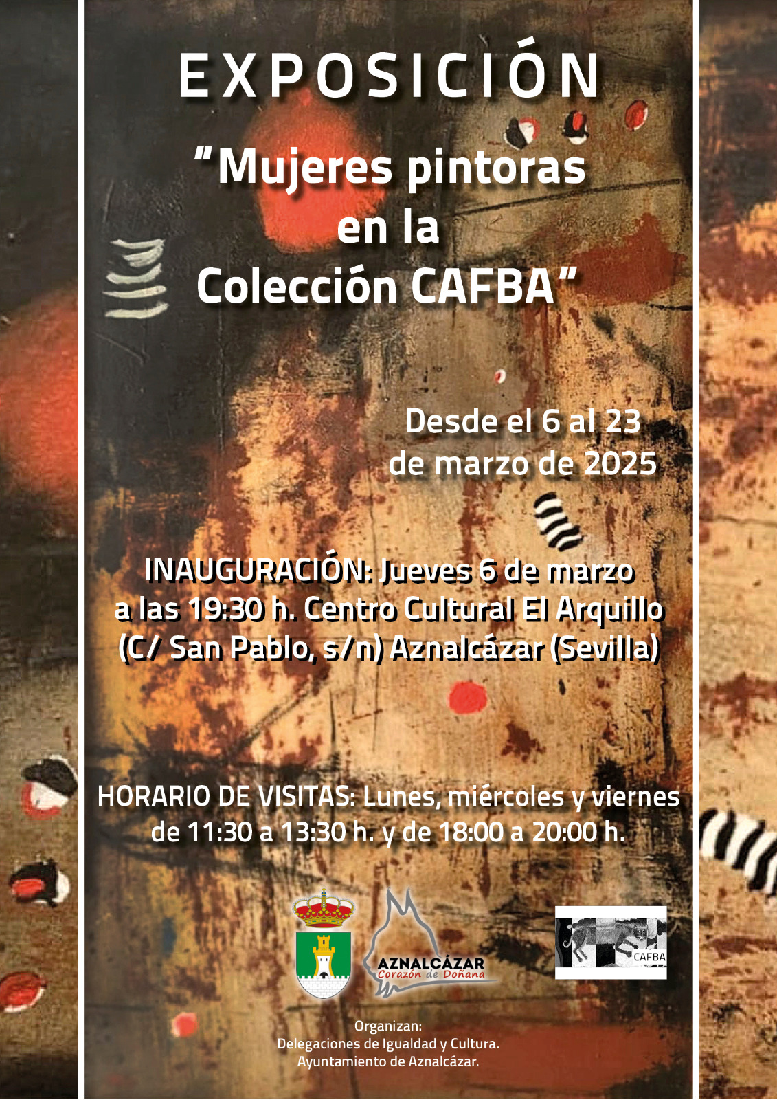 El jueves, 6 de marzo a las 19.30h en el Centro Cultural El Arquillo se inaugura la exposición 'Mujeres Pintoras en la Colección CAFBA'. Esta actividad se engloba en el programa de actividades organizado en torno al 8 de marzo, Día Internacional de la Mujer.
