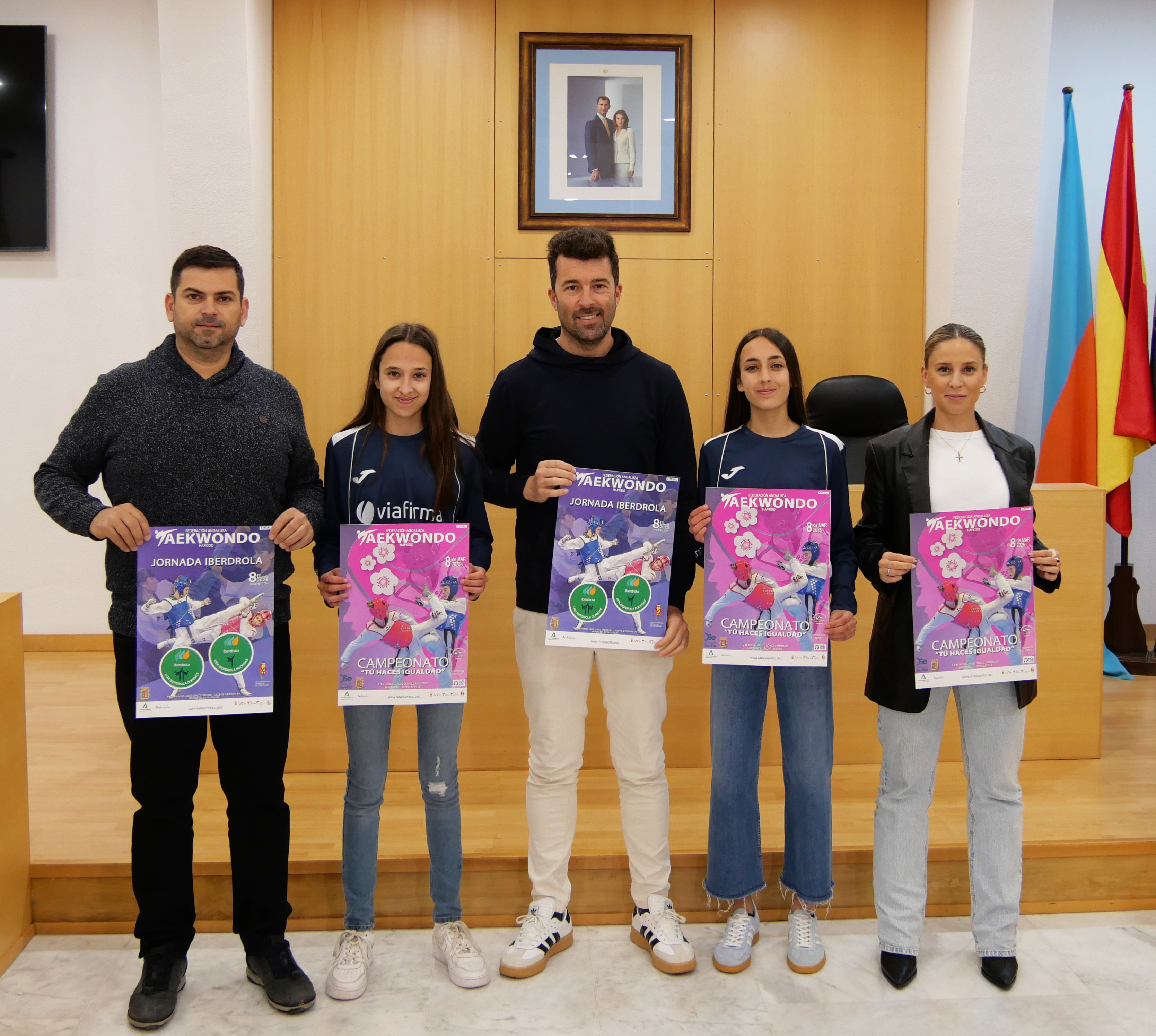 El concejal de Deportes, Javier Rodríguez, ha presentado el Campeonato 'Tú Haces Igualdad' Taekwondo – Hapkido, y la Jornada femenina Iberdrola, junto al presidente de la Federación Andaluza de Taekwondo, Ismael Bernabal, y la entrenadora del club Taekwondo Mairena, Paula Acosta, que tendrán lugar este sábado 8 de marzo, en el Pabellón Miguel Ángel Gómez Campuzano, con motivo del Día de la Internacional de la Mujer.