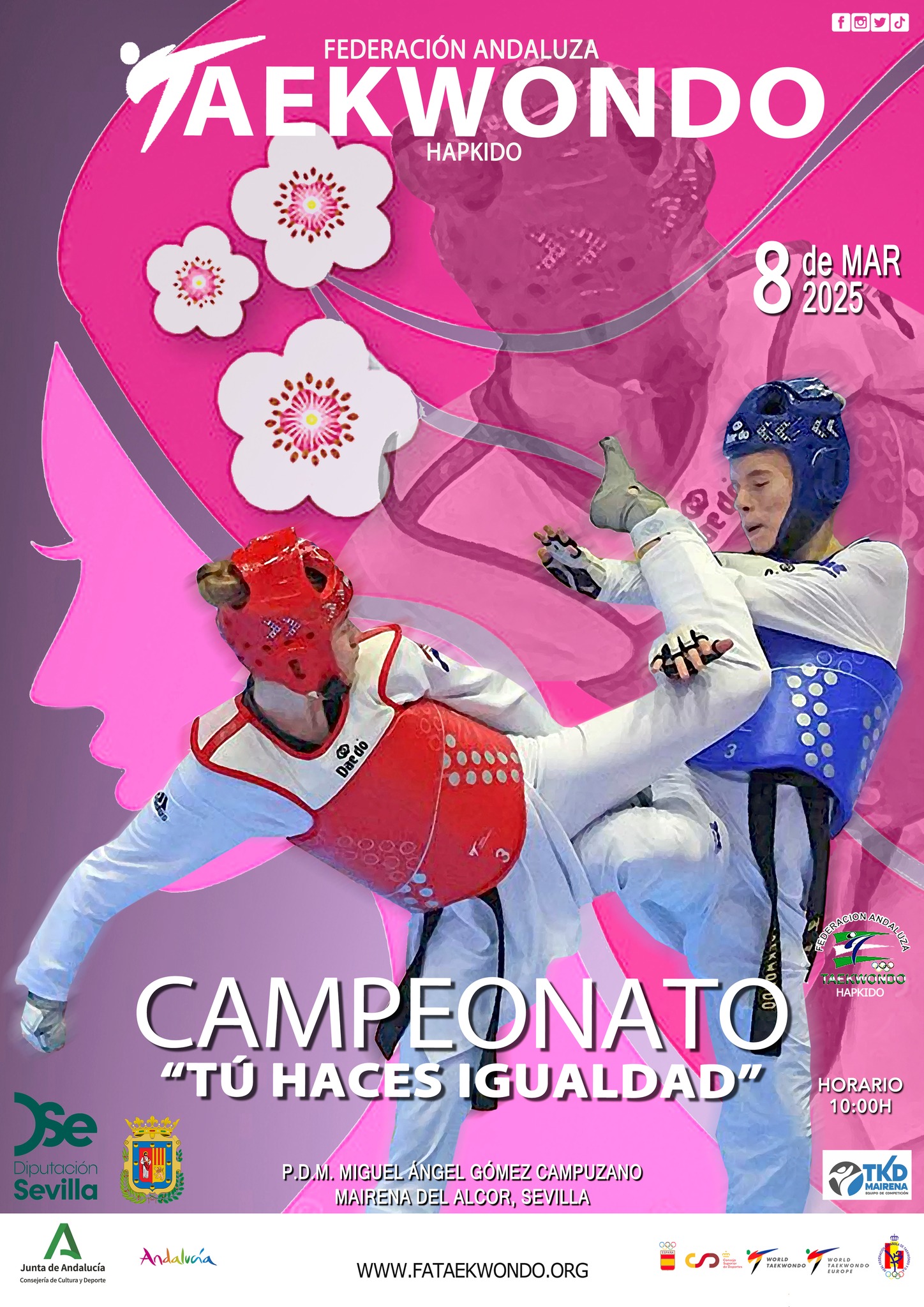 Estos campeonatos, junto a otros dos más, se encuentran en el marco del convenio de colaboración rubricado por el Ayuntamiento de Mairena del Alcor y la Federación Andaluza de Taekwondo para la realización en la localidad de numerosas actividades del calendario deportivo taekwondista.