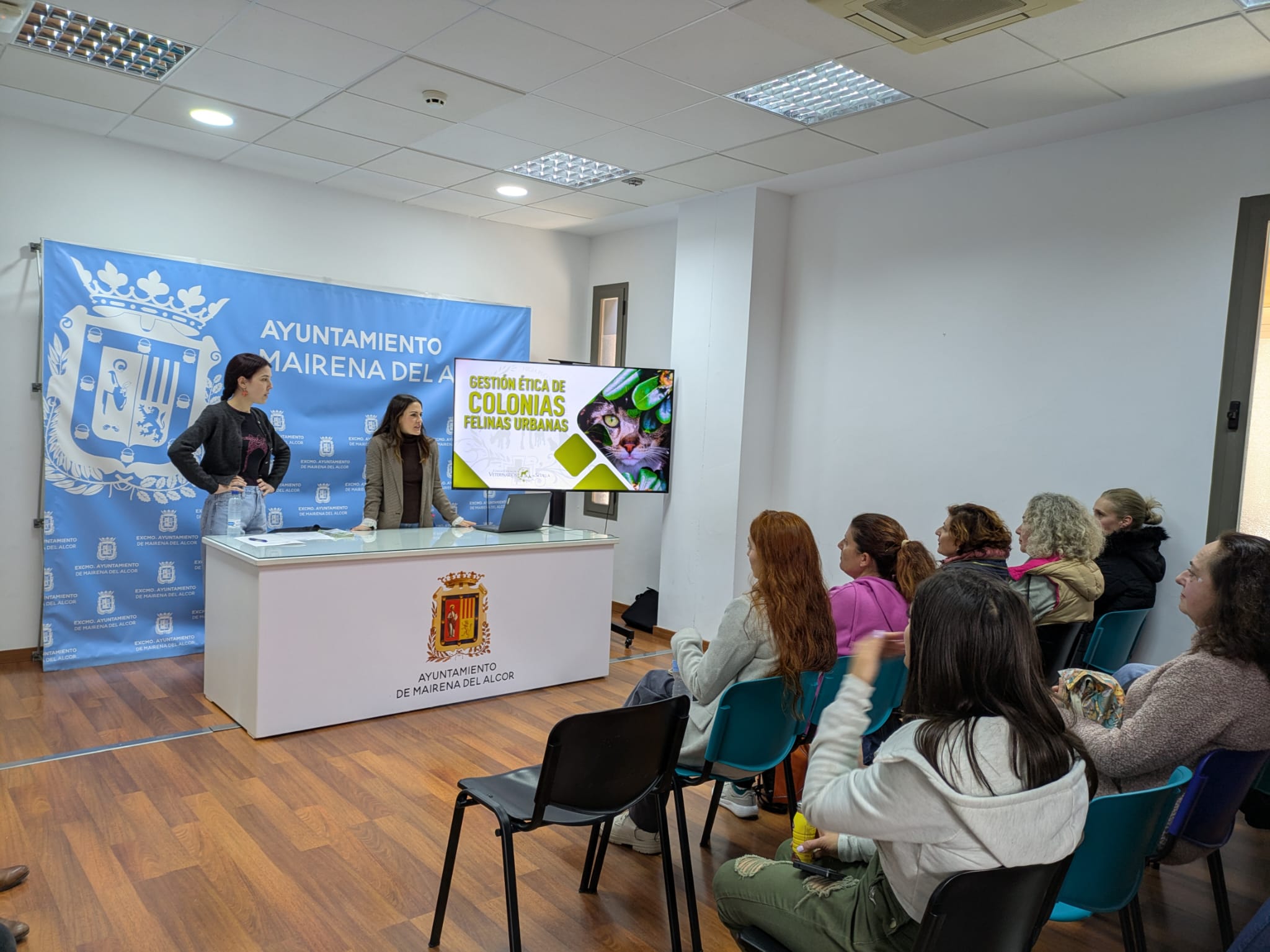 El viernes se celebró una jornada dirigida a voluntarias cuidadoras de colonias felinas. La formación, impartida por una veterinaria del Colegio de Veterinario de Sevilla, persigue una gestión eficiente que respete las normas de Bienestar Animal, asegure el control sanitario óptimo de la colonia y garantice la Salud Pública.