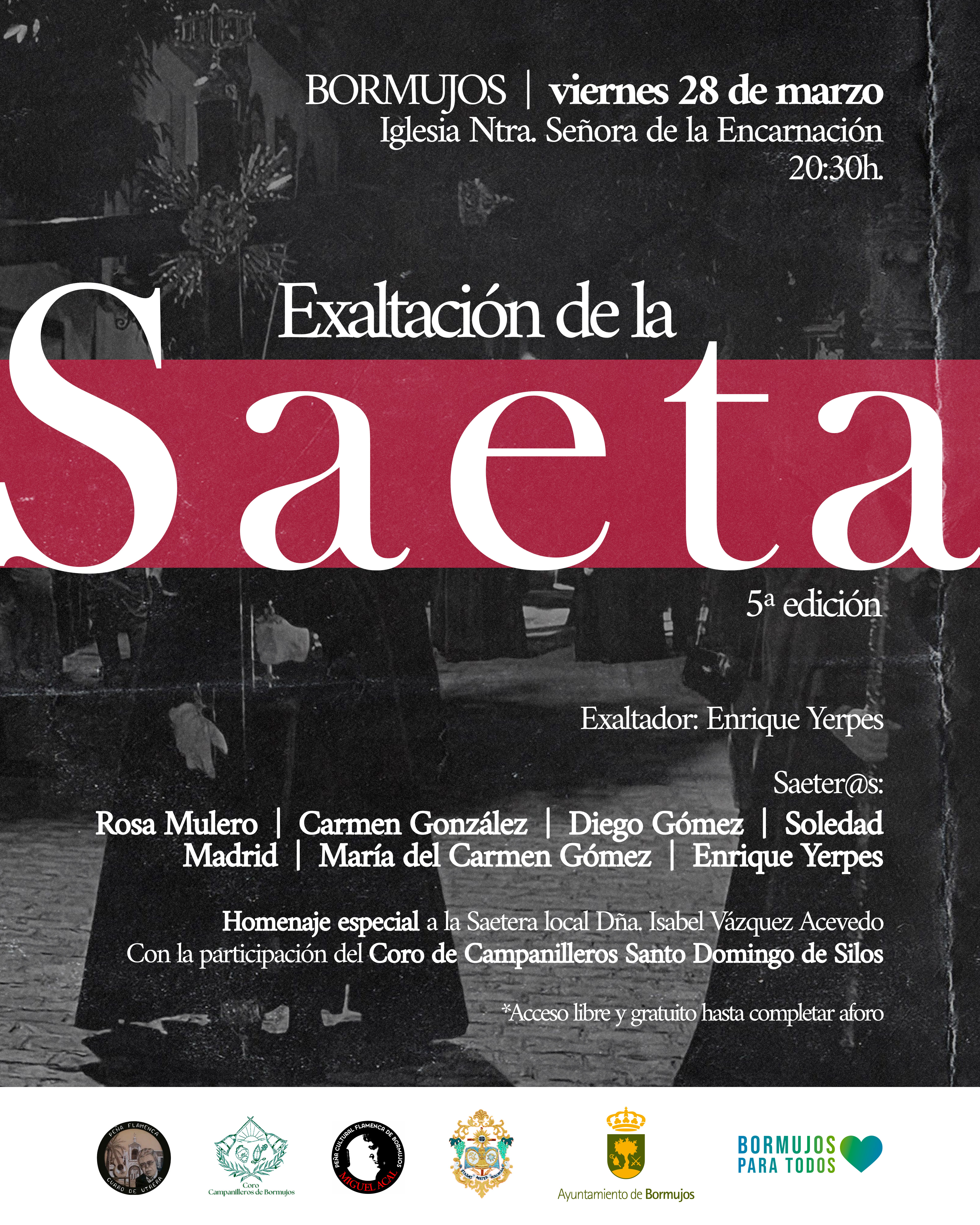 La exaltación de la saeta de Bormujos cumple ya su quinta edición. Organizada por la Peña Cultural Flamenca de Bormujos 'Miguel Acal' y con la exaltación a cargo de la Peña Flamenca Curro de Utrera.