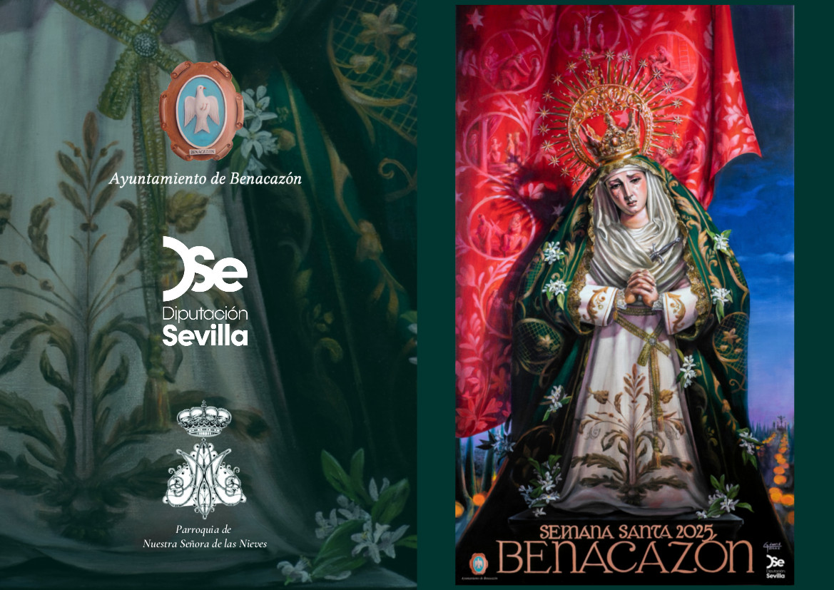 *El Cartel anunciador de nuestra Semana Santa 2025, tiene como protagonista a María Santísima de los Dolores, una obra pictórica realizada por el artista DAVID GÓMEZ LÓPEZ (natural de Mairena del Alcor) que, siguiendo la alternancia de carteles establecida entre las Hermandades de penitencia de nuestro pueblo, este año corresponde a la Hermandad Vera Cruz Benacazón.