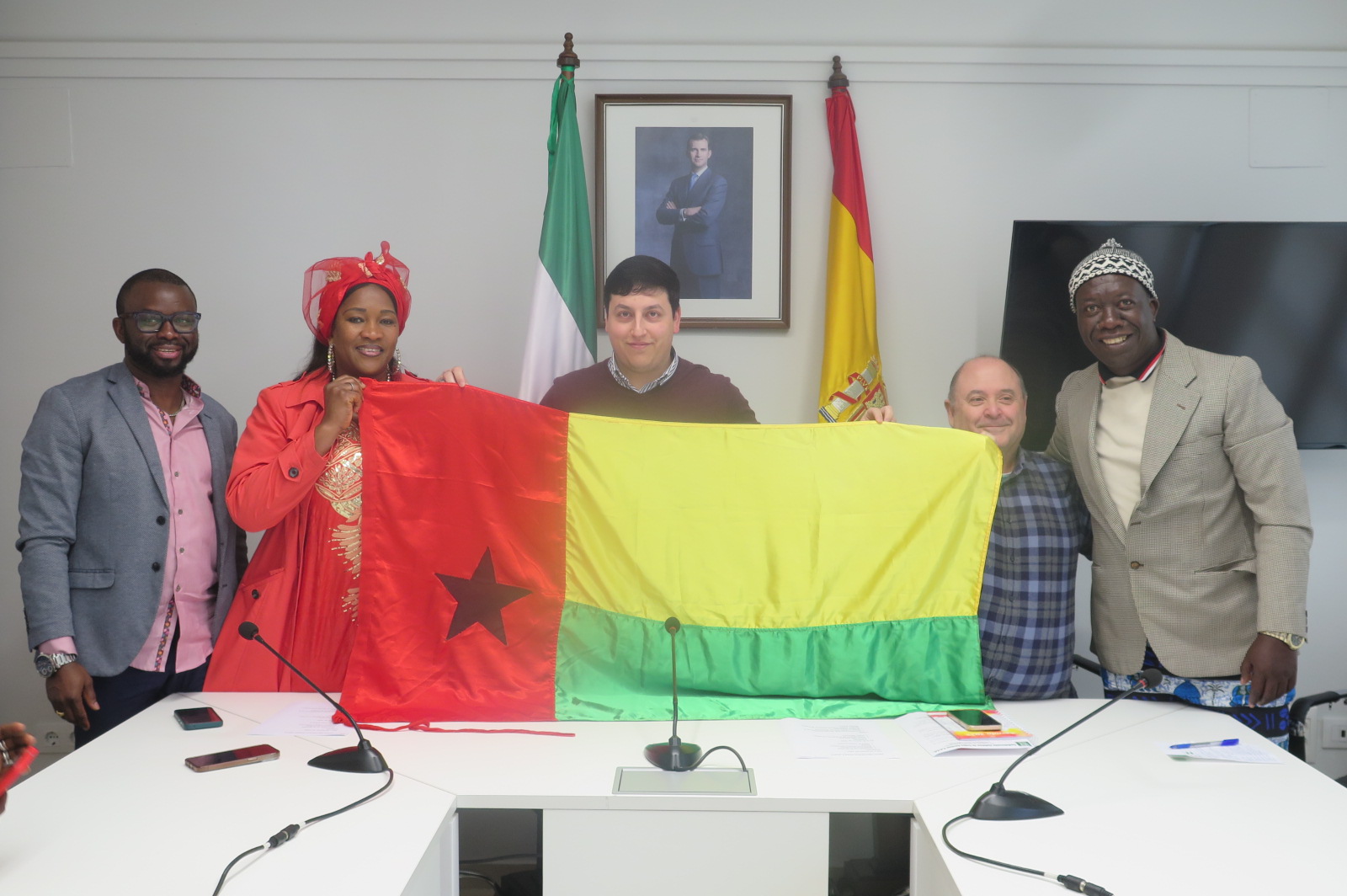 El concejal de Cultura, Cristian M. Cáceres, y el técnico de Cultura, Paco Fernández, recibieron el pasado viernes en el Salón de Plenos la visita de un grupo procedente de Guinea-Bisáu.