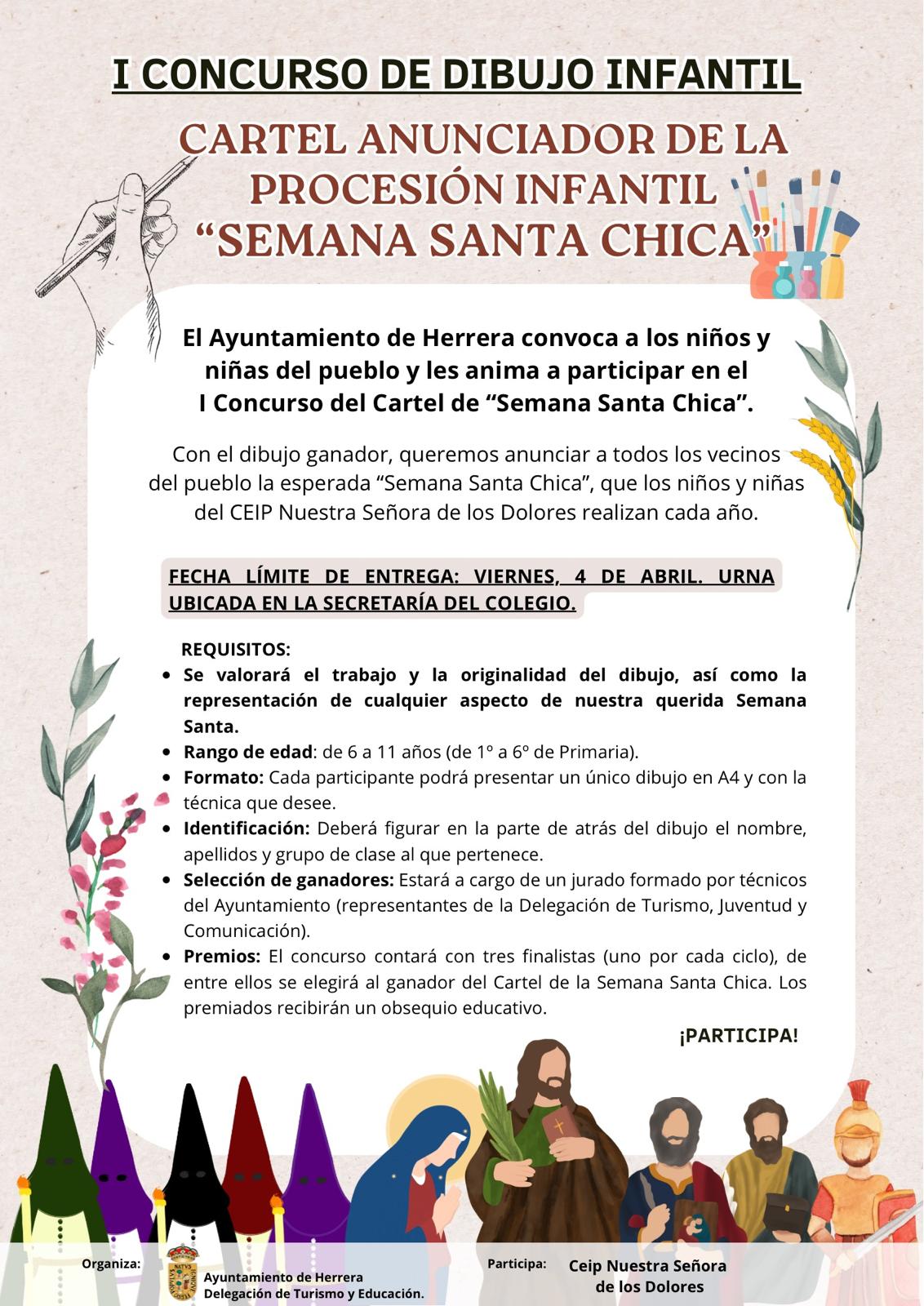 El Ayuntamiento de Herrera convoca a los niños y niñas del municipio y les anima a participar en el Primer Concurso del Cartel de "Semana Santa Chica".