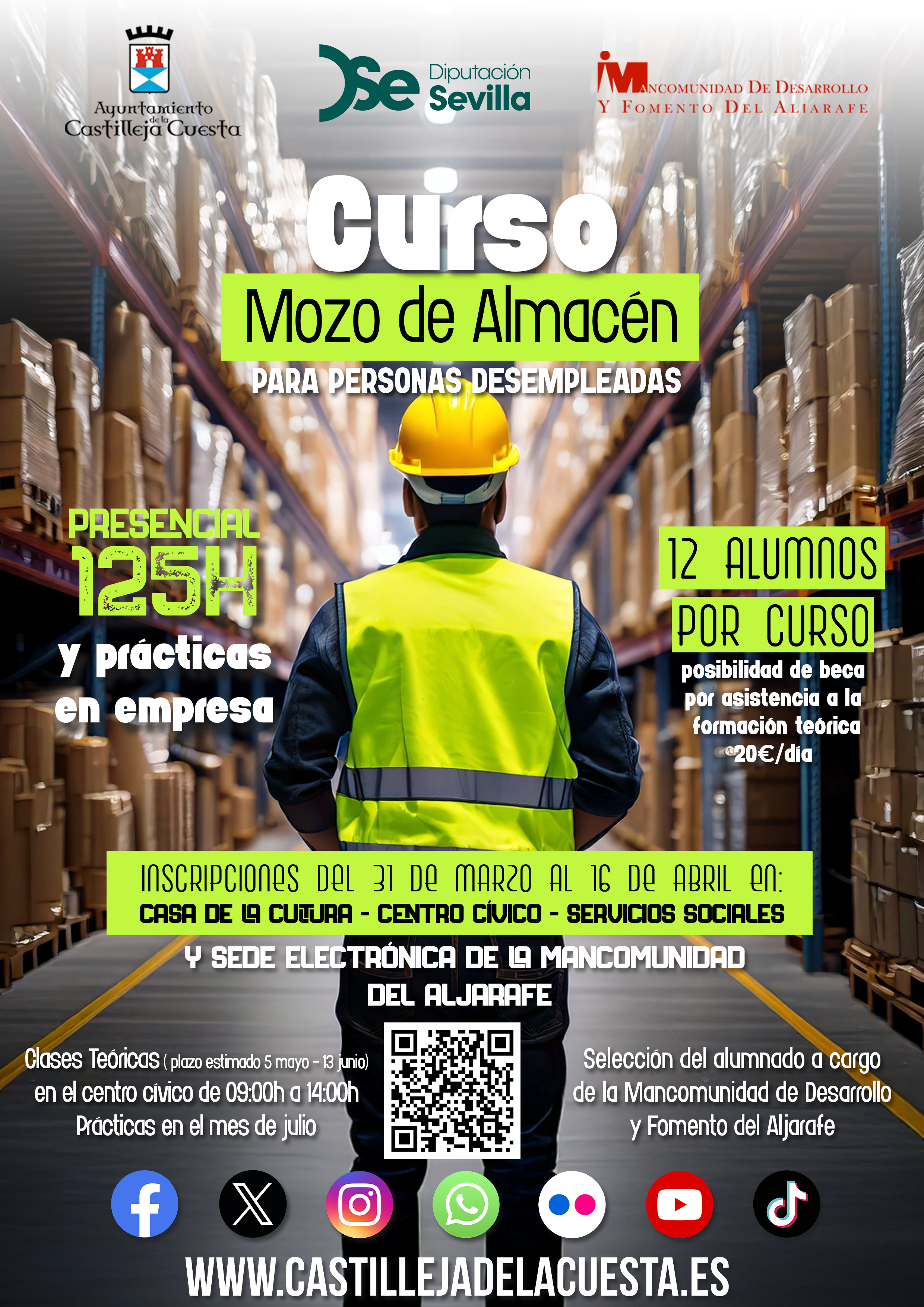 Curso de mozo de almacén perteneciente al Proyecto Aljarafe Formación VI, destinado a personas desempleadas.