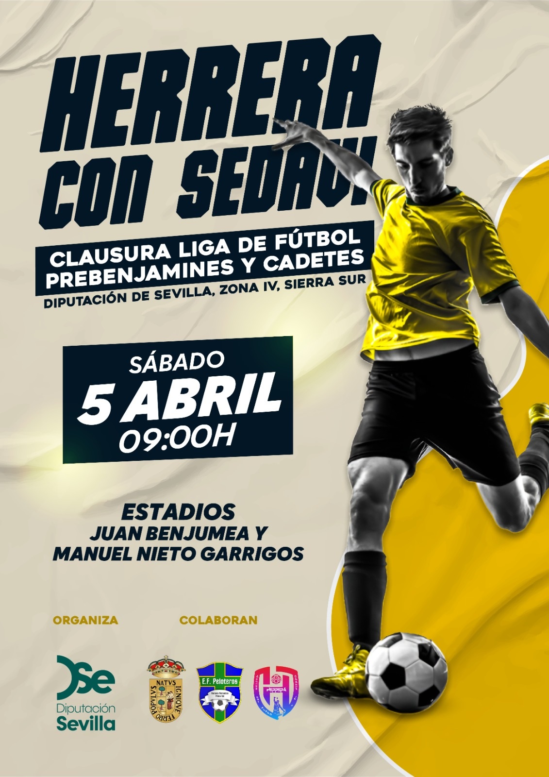 El sábado, 5 de abril, se celebrará en Herrera la clausura de las ligas de fútbol (Zona IV Sierra Sur) en las categorías de prebenjamines y cadetes.