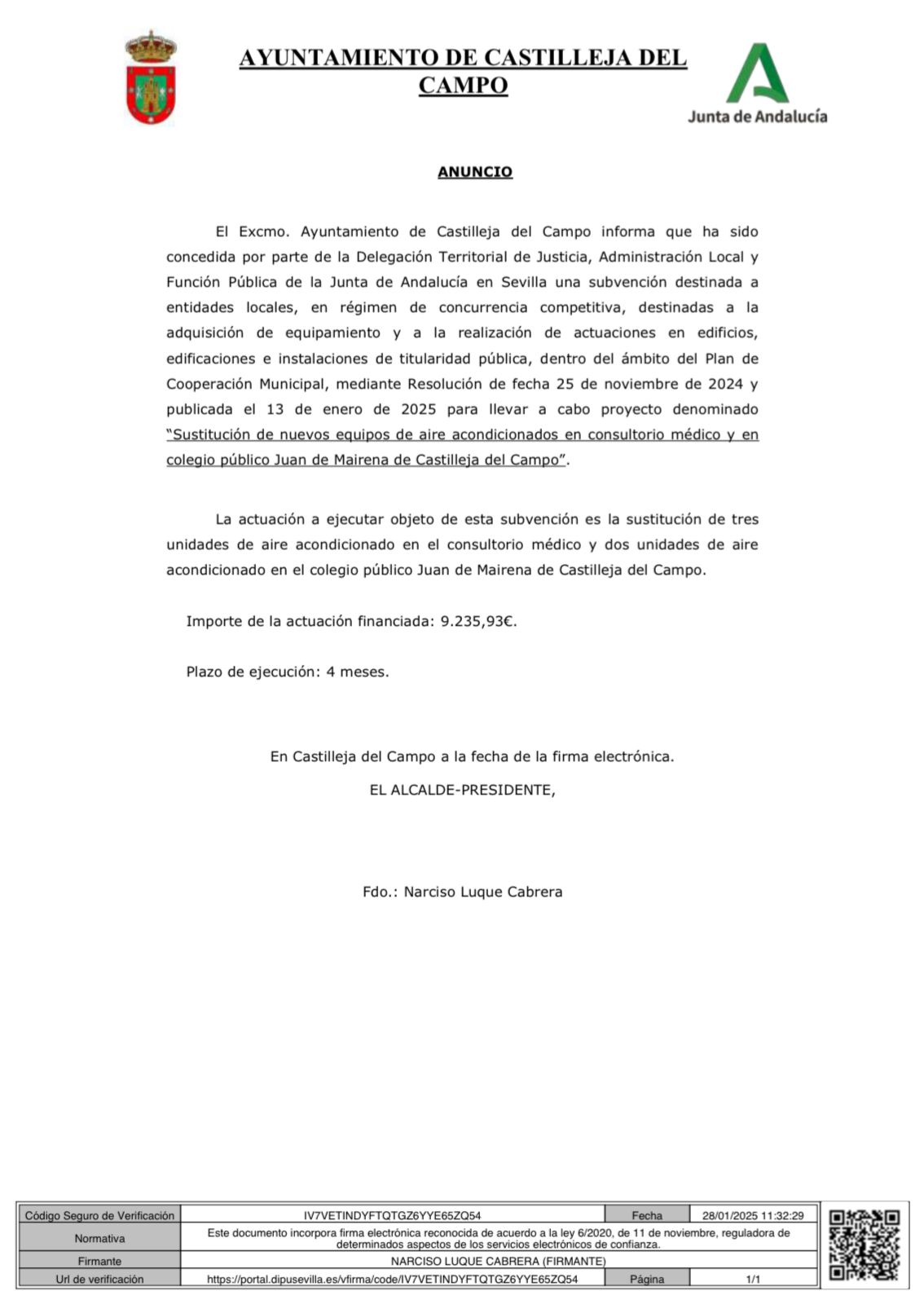 El Excmo. Ayuntamiento de Castilleja del Campo informa que ha sido