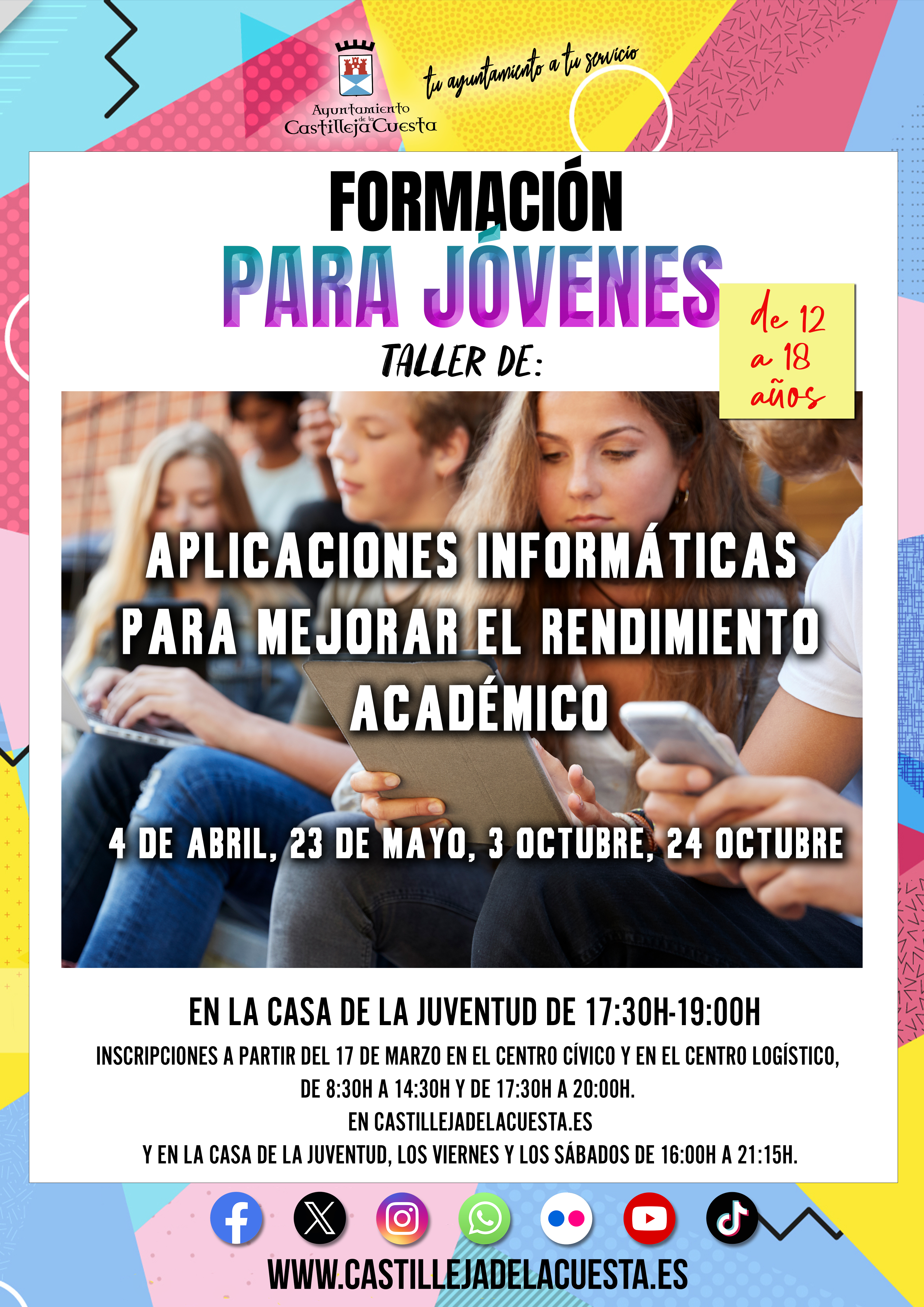 Fecha inicio Vie, 04/04/2025 - 11:10 Fecha fin Vie, 11/04/2025 - 11:10 Imágenes Ubicación Categoría evento Juventud Mostrar en el carrusel de la sección No Más información http://www.castillejadelacuesta.es/es/actualidad/eventos/Formacion-para-jovenes…