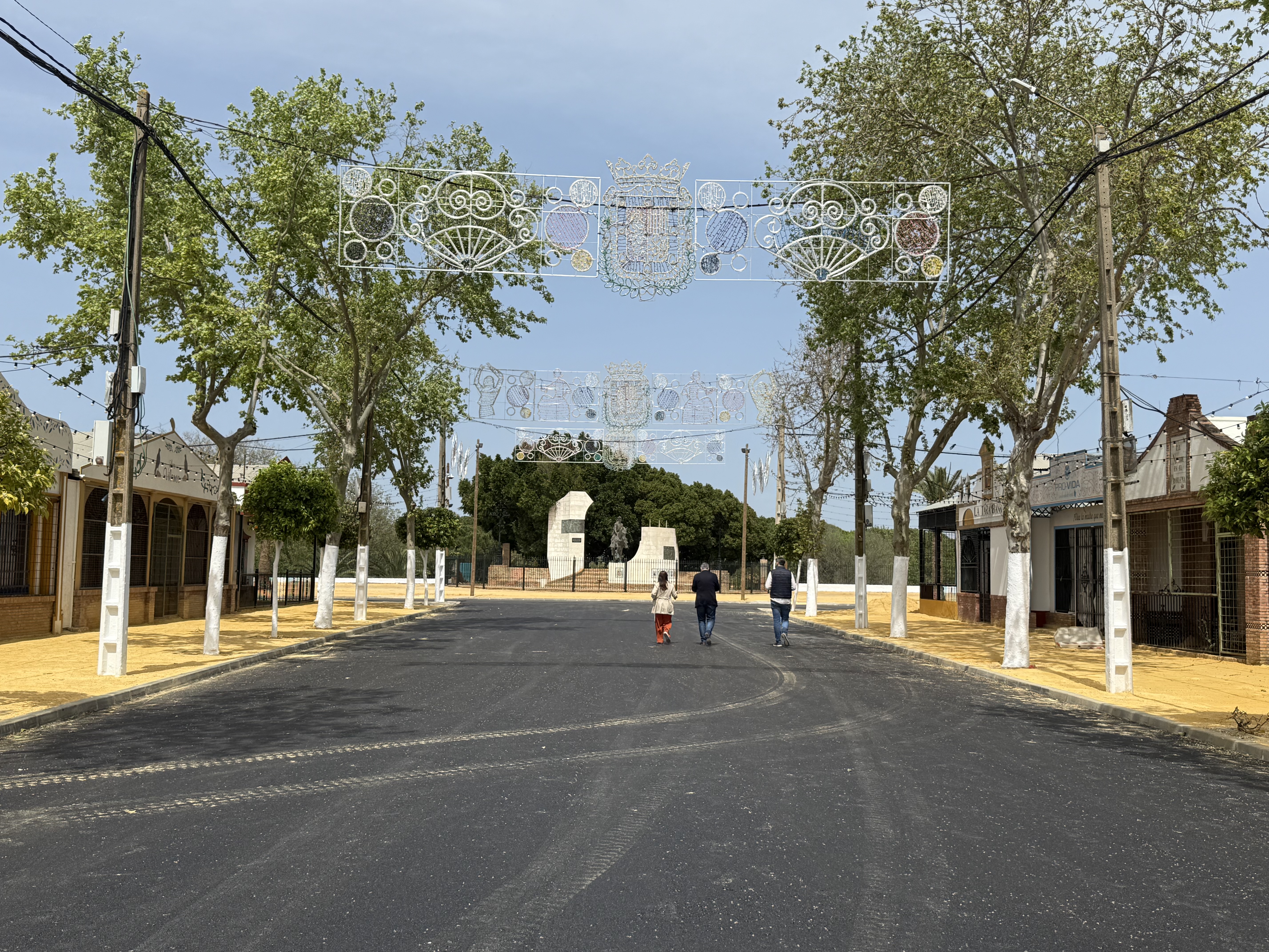 Los trabajos de mejora incluyen el nuevo sistema de abastecimiento y saneamiento, el reasfaltado de las calles, la renovación del albero, la reordenación y completado de los alcorques con nuevo árboles y la ampliación del ancho de la calle Washington Irving frente al monumento a la Feria antigua.