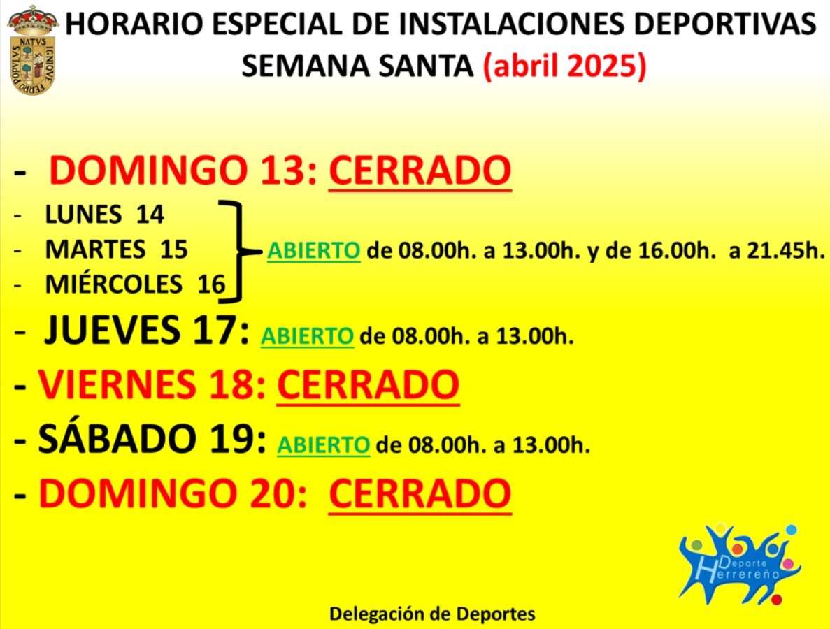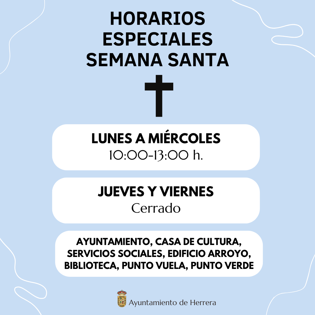 Horarios especiales de las dependencias e instalaciones municipales durante Semana Santa (14/04-18/04).