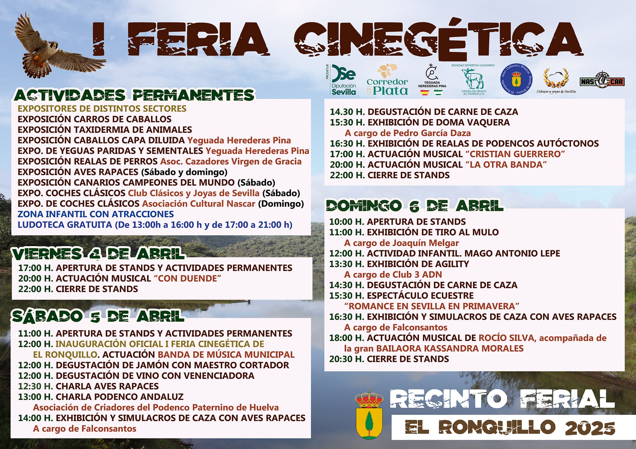 La salida hacia El Ronquillo está programada para las 10:00 horas y el regreso está previsto para las 17:00 horas. Los asistentes tendrán la oportunidad de disfrutar de diversas actividades relacionadas con la caza y la naturaleza, que se detallan en el programa de actividades adjunto.