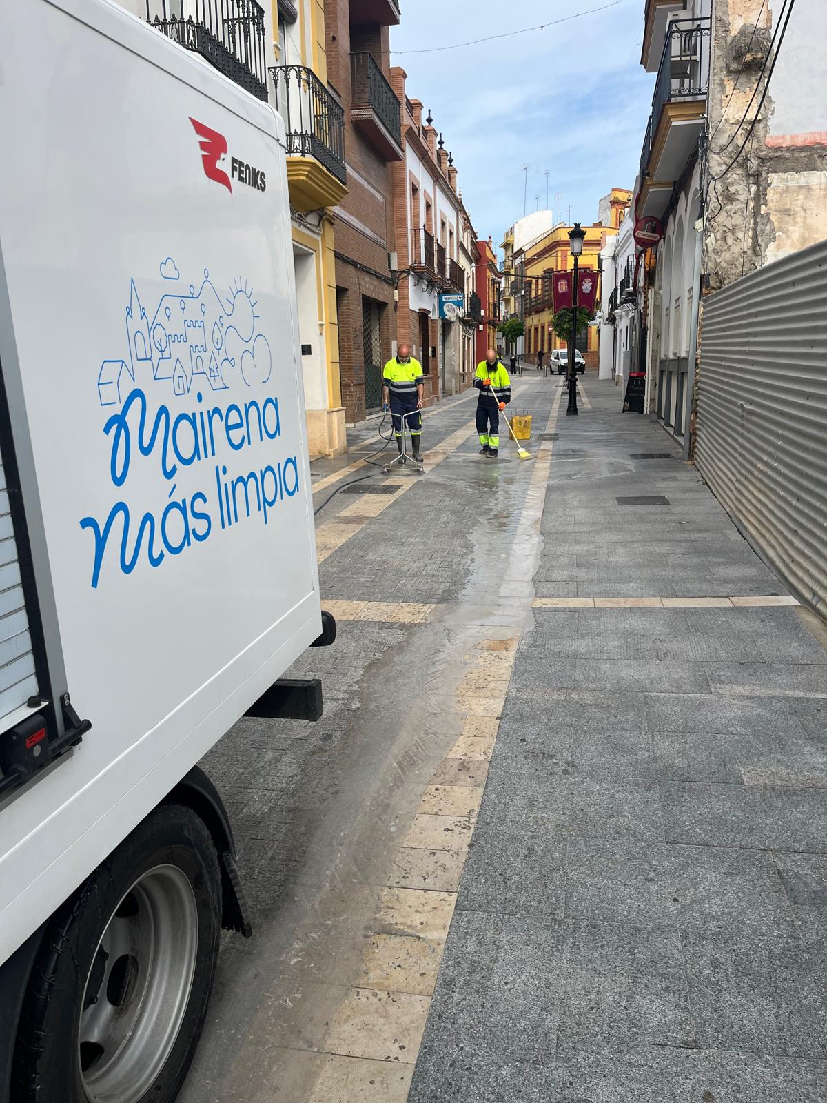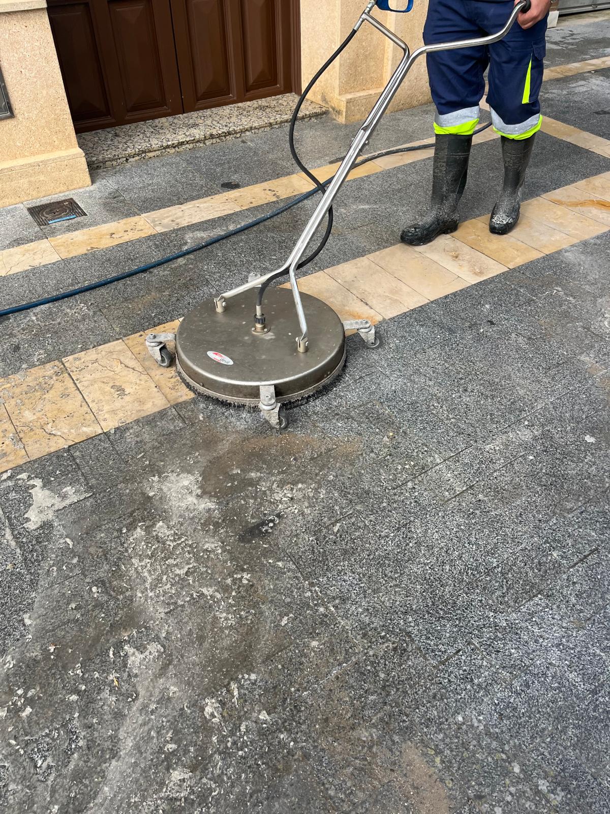 Trabajos de limpieza para eliminar los restos de cera que han dejado las procesiones de Semana Santa. El dispositivo de última generación hace más sencilla la retirada de las manchas de cera y reduce el riesgo de resbalones, recuperando el estado original del pavimento.
