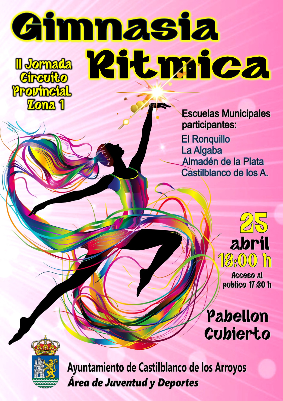 A las 18:00 h., de hoy, viernes 25 de abril, dará comienzo la exhibición de Gimnasia Rítmica que nuestro pueblo acoge, dentro del Circuito Provincia que organiza la Diputación de Sevilla.