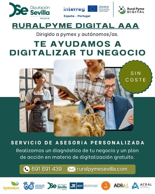 Si tienes una pyme rural en la provincia de Sevilla, accede a más información en: https://ruralpymesevilla.com/