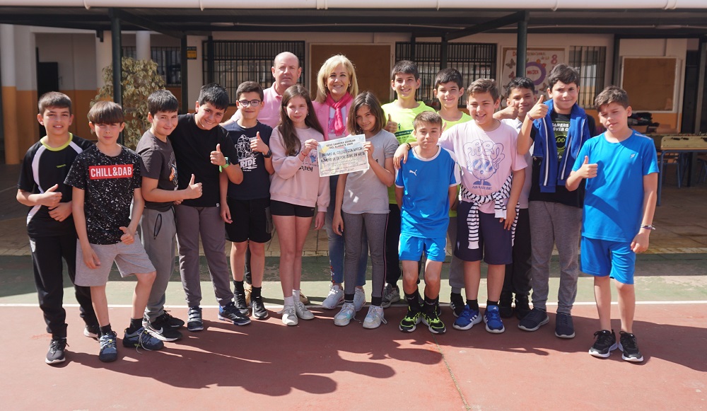 La alcaldesa, Carmen Herrera, visitó ayer el centro educativo para hacer entrega a su director, Antonio de la Torre, del cheque de 500€ para la compra de material deportivo.