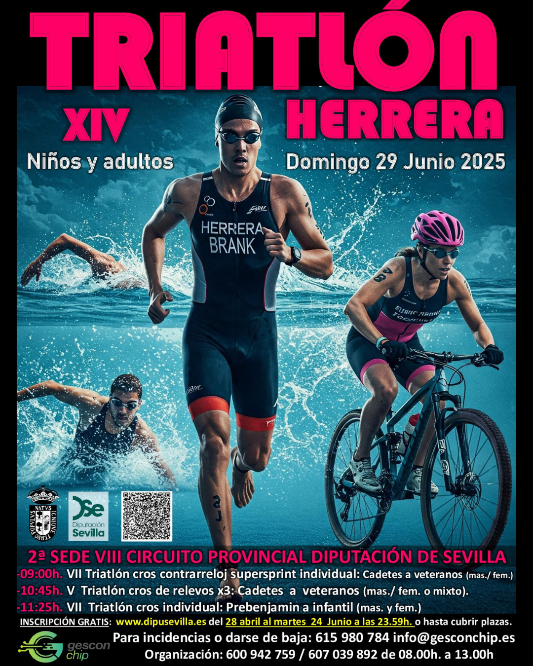 Horario: 09:00 horas. Fecha inicio Dom, 29/06/2025 - 09:00 Fecha fin Dom, 29/06/2025 - 15:00 Imágenes Ubicación Categoría evento Deporte Mostrar en el carrusel de la sección No Más información http://www.herrera.es/es/actualidad/eventos/XIV-TRIATLON-CROS-DE-HERRERA-00001/