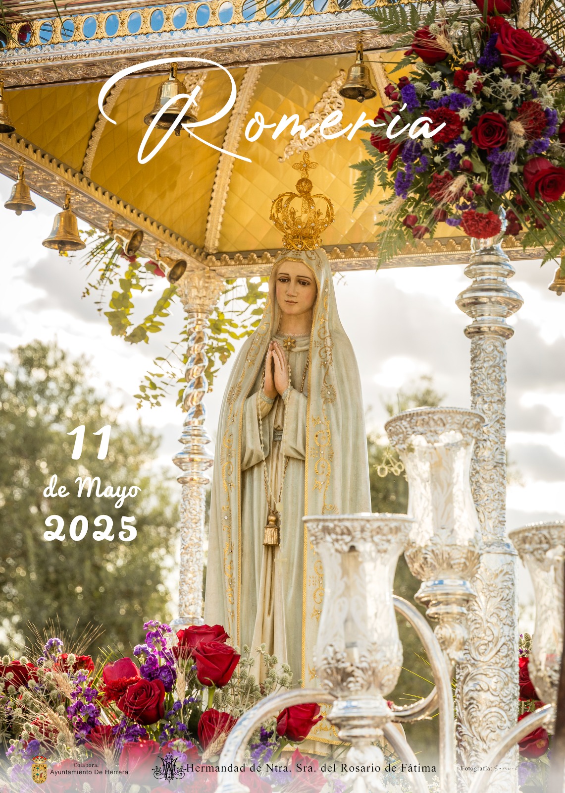 Joaquín Álvarez, Hermano Mayor de la Hermandad del Rosario de Fátima entre 1996 y 2000, y José Estudillo, Hermano Mayor entre 2004 y 2007, fueron los encargados de descubrir el cartel anunciador de la Romería 2025, compuesto por una imagen de la Virgen de Rosario de Fátima en su carreta camino a la ermita ubicada en el recinto de Las Carrizosas, obra del fotógrafo herrereño Samuel Ramírez.