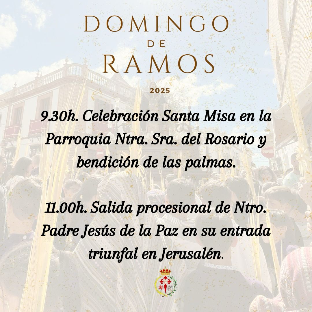 El Grupo Parroquial de Nuestro Padre Jesús de la Paz en su Entrada Triunfal en Jerusalén publica los horarios del Domingo de Ramos en El Rubio
