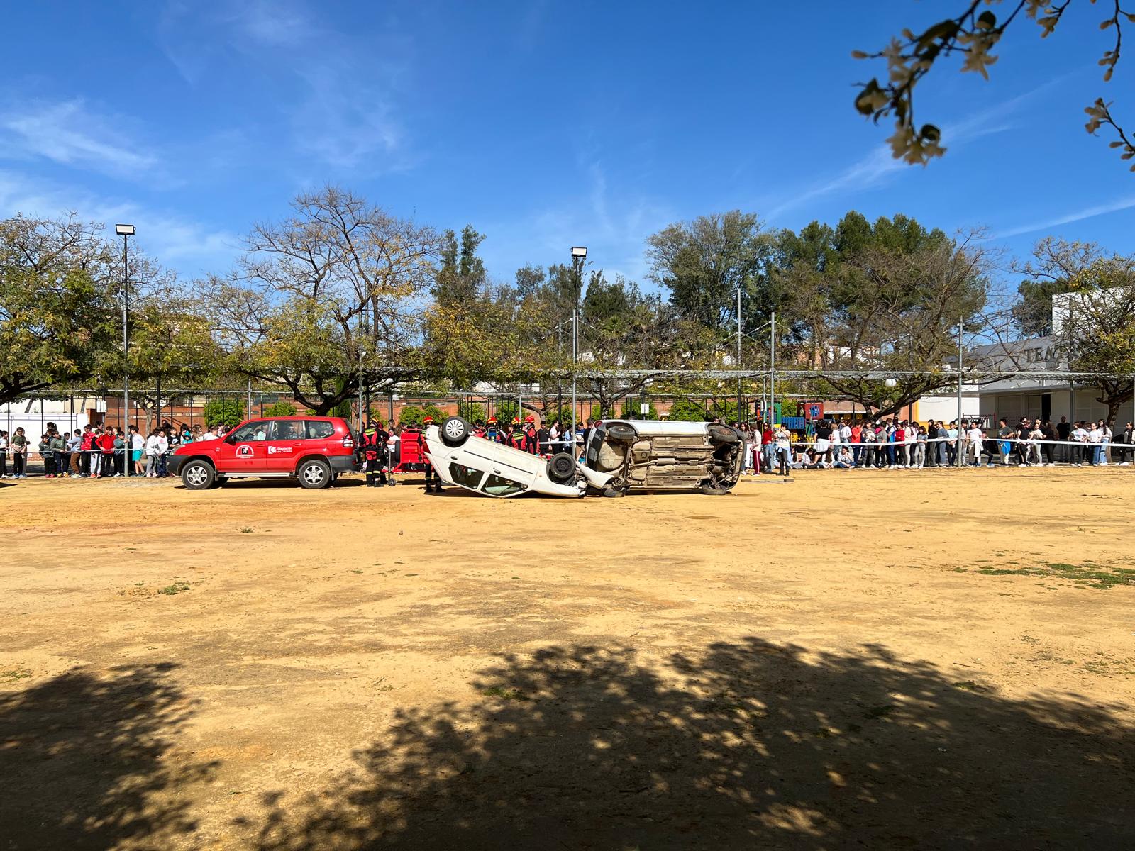 El objetivo de esta actividad ha sido concienciar al alumnado sobre la seguridad vial y mostrar cómo actuar ante una situación de emergencia real. Durante el ejercicio, los estudiantes han podido presenciar el rescate de dos vehículos accidentados, con la participación de un equipo de bomberos de Córdoba, personal sanitario de la ambulancia del Distrito Guadalquivir, trabajadores del Ayuntamiento, Policía Local y Guardia Civil de Peñaflor.