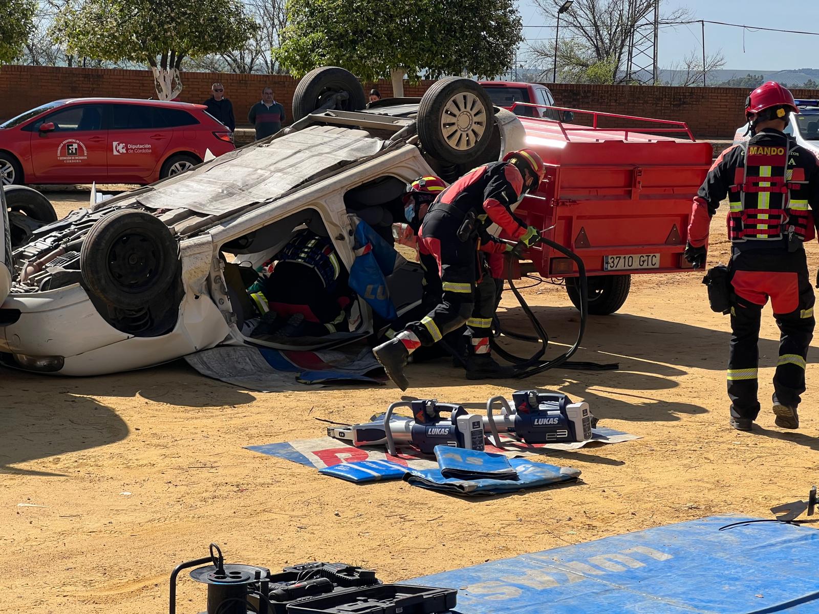 Contamos con la presencia y el apoyo de Antonio Ramón Martín Romero, Diputado Delegado de Deportes y Protección Civil de la Diputación de Córdoba, entidad que ha hecho posible la participación de los servicios de emergencia. Además, agradecemos especialmente la colaboración del Desguace y Chatarreria Cruz de la Gitana por la donación de los vehículos utilizados en el simulacro.