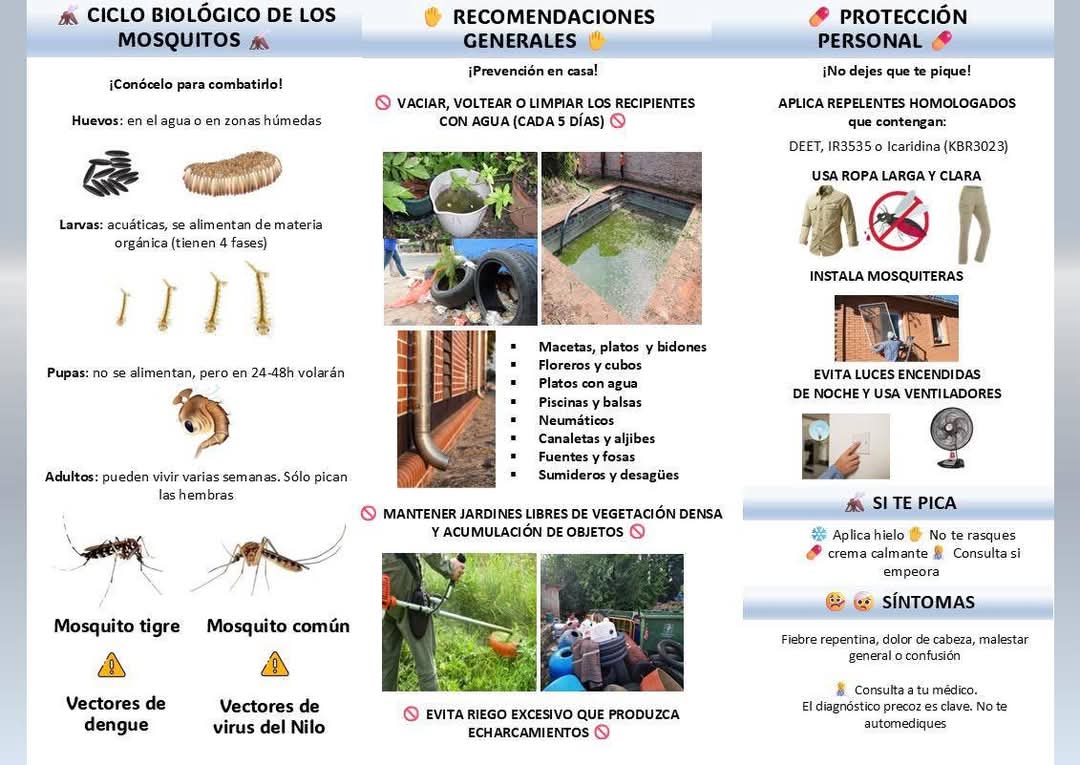 ✅ Campañas de concienciación ciudadana y fomento de medidas preventivas como el uso de repelentes o la eliminación de aguas estancadas.