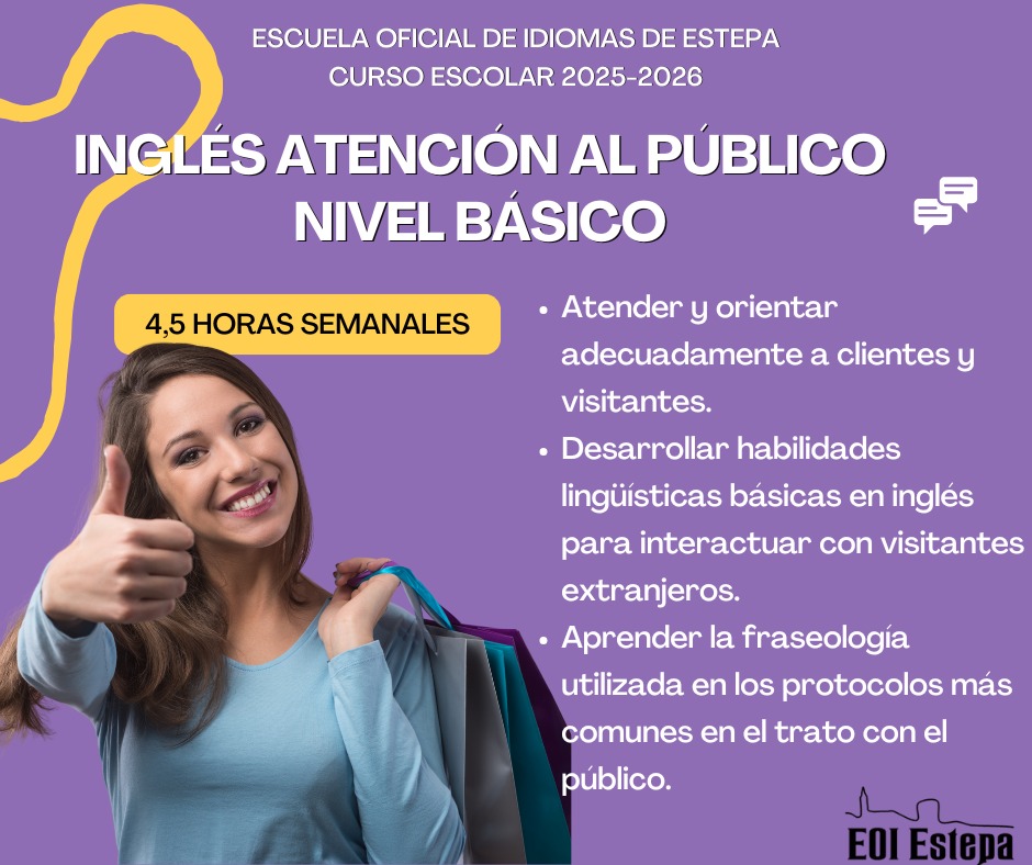 La EOI de Estepa prepara el próximo curso escolar 2025/26 y abre el plazo de inscripciones para el título de inglés atención al público (nivel básico).