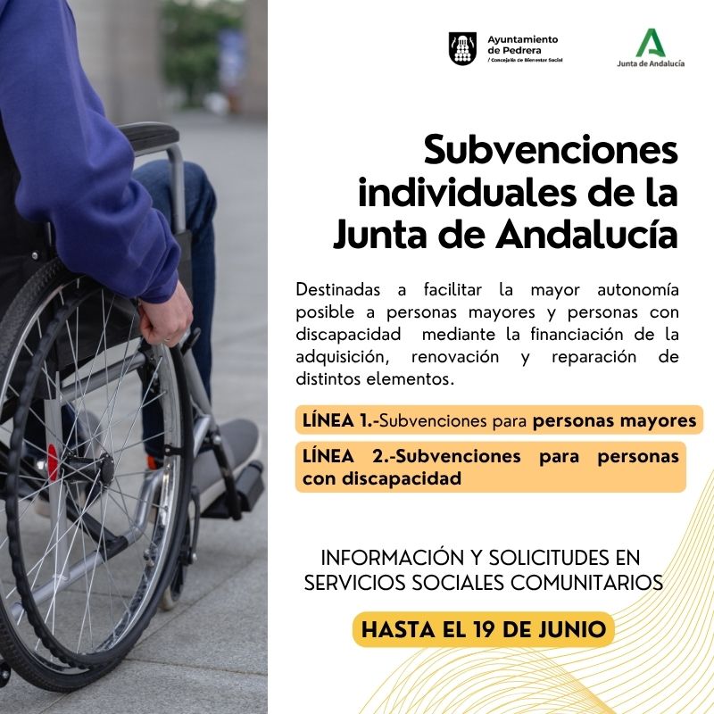 Ya está en marcha la Convocatoria para acogerse a las subvenciones individuales, tanto para Mayores como para Personas con Discapacidad. El plazo está abierto hasta el 19 de junio.