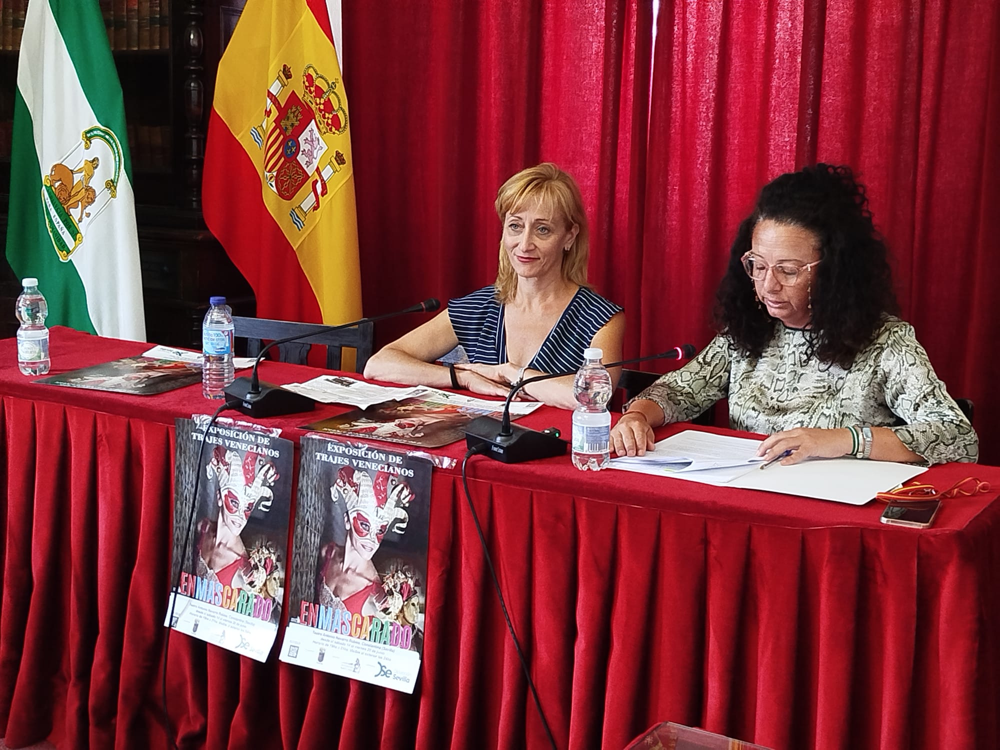 Organizada por la Asociación Marco Luna, en colaboración con el Ayuntamiento de Constantina y la cofinanciación de Diputación de Sevilla podremos disfrutar en Constantina de la Exposición "Enmascarado" con trajes de época hechos a mano a base de material reciclado y sus máscaras venecianas. La exposición cerrará el sábado 21 de junio con un emotivo desfile final en calle Mesones con voluntarios locales. Ayer se presentaba en el Salón de Plenos a cargo de la teniente de alcalde, Sonia Ortega; la delegada de Turismo, Mati Rueda y Eva Luna.