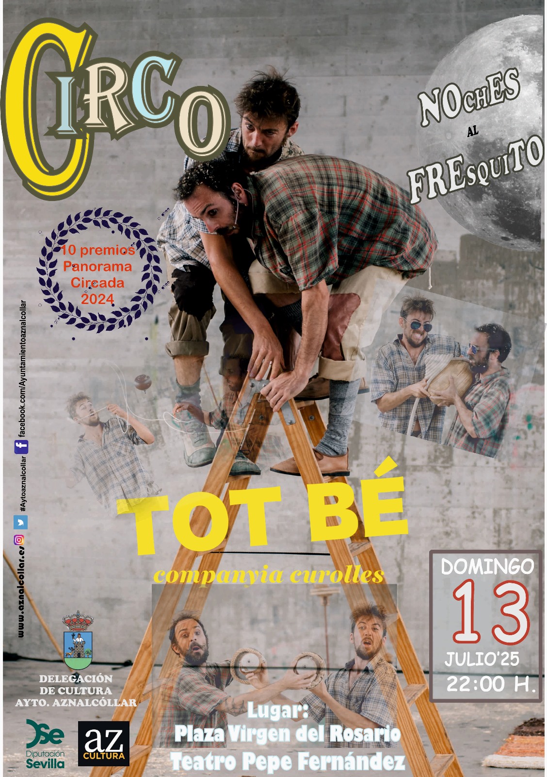 Una carretilla, una escalera, platos de puntería, mucha