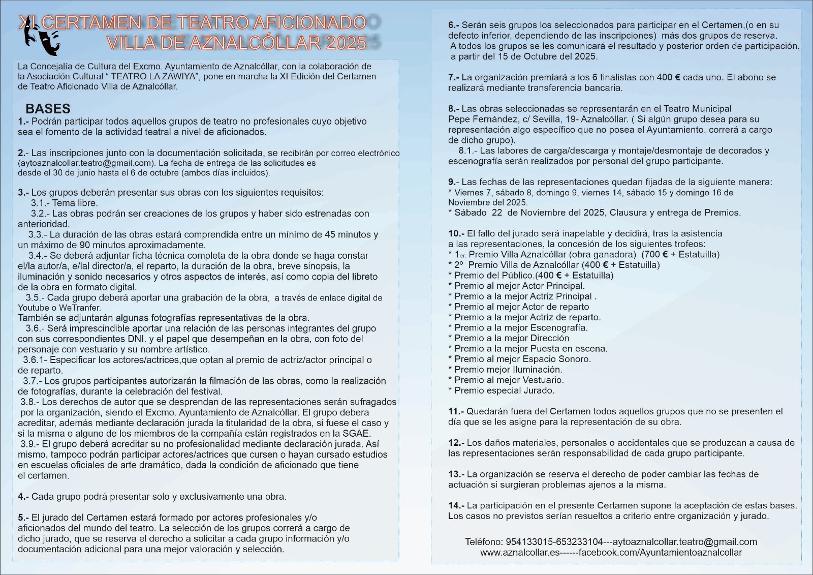 Imagen Imágenes Ubicación Categoría noticia Cultura Mostrar en el carrusel de la sección No Fecha Jue, 26/06/2025 - 21:14 Más información http://www.aznalcollar.es/es/actualidad/noticias/XI-edicion-2025-del-Certamen-N…