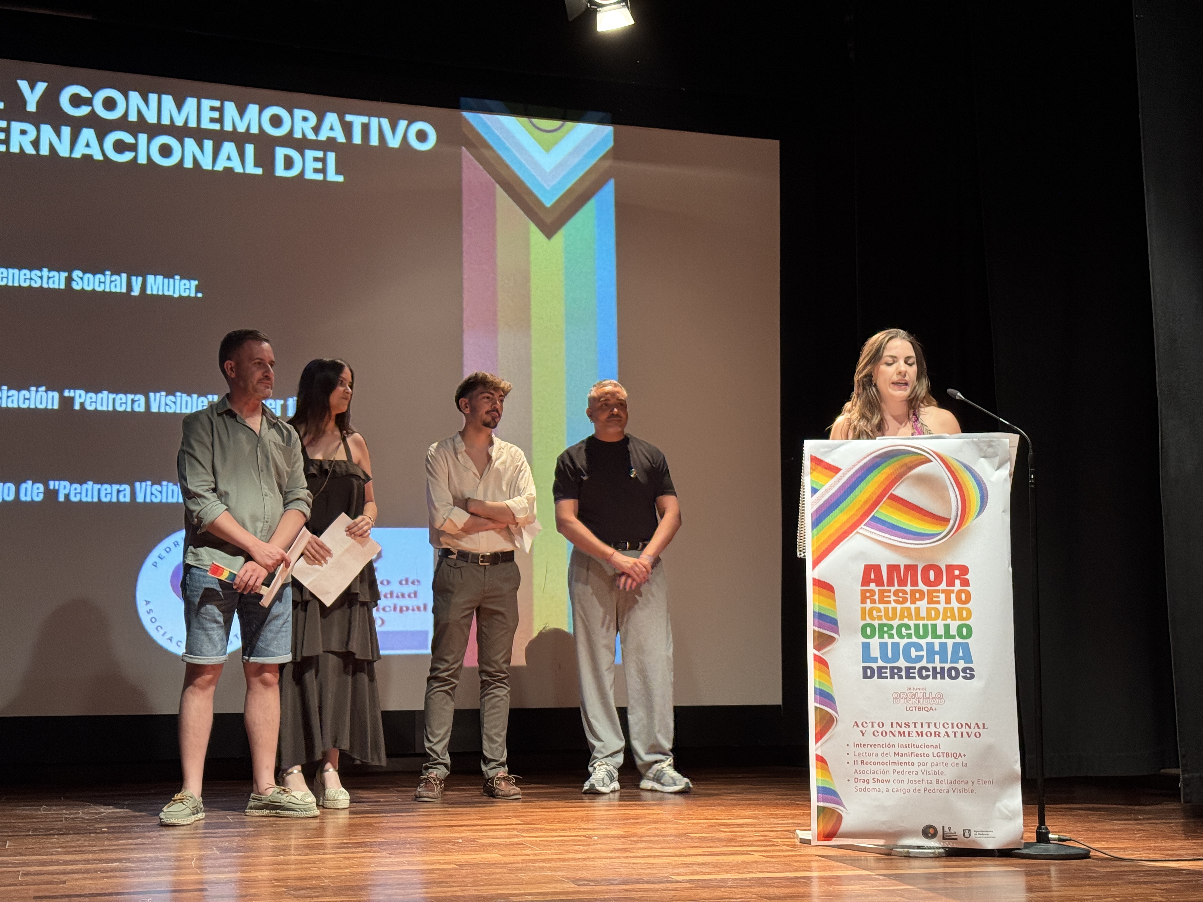 El Teatro Municipal de Pedrera ha acogido este viernes el acto institucional y conmemorativo del Día del Orgullo LGTBIQA , una cita organizada por la Concejalía de Igualdad, Mujer y Bienestar Social, en colaboración con la Asociación Pedrera Visible, que ha reunido a vecinos, vecinas, representantes institucionales, colectivos sociales y culturales de la localidad para reivindicar una sociedad más libre, diversa y justa.