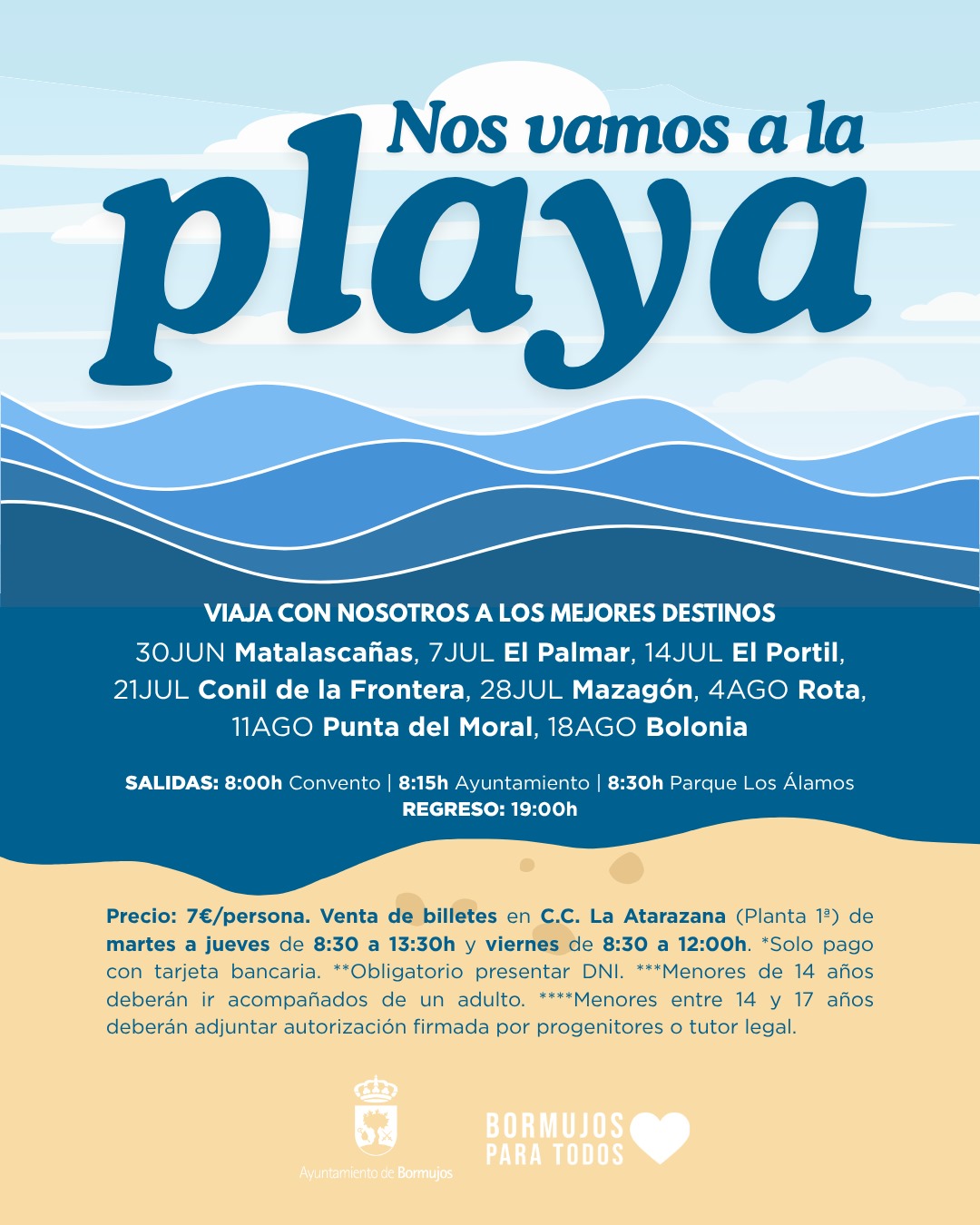 El Ayuntamiento de Bormujos te lleva a pasar el día a la playa durante todos los lunes de julio y de agosto.