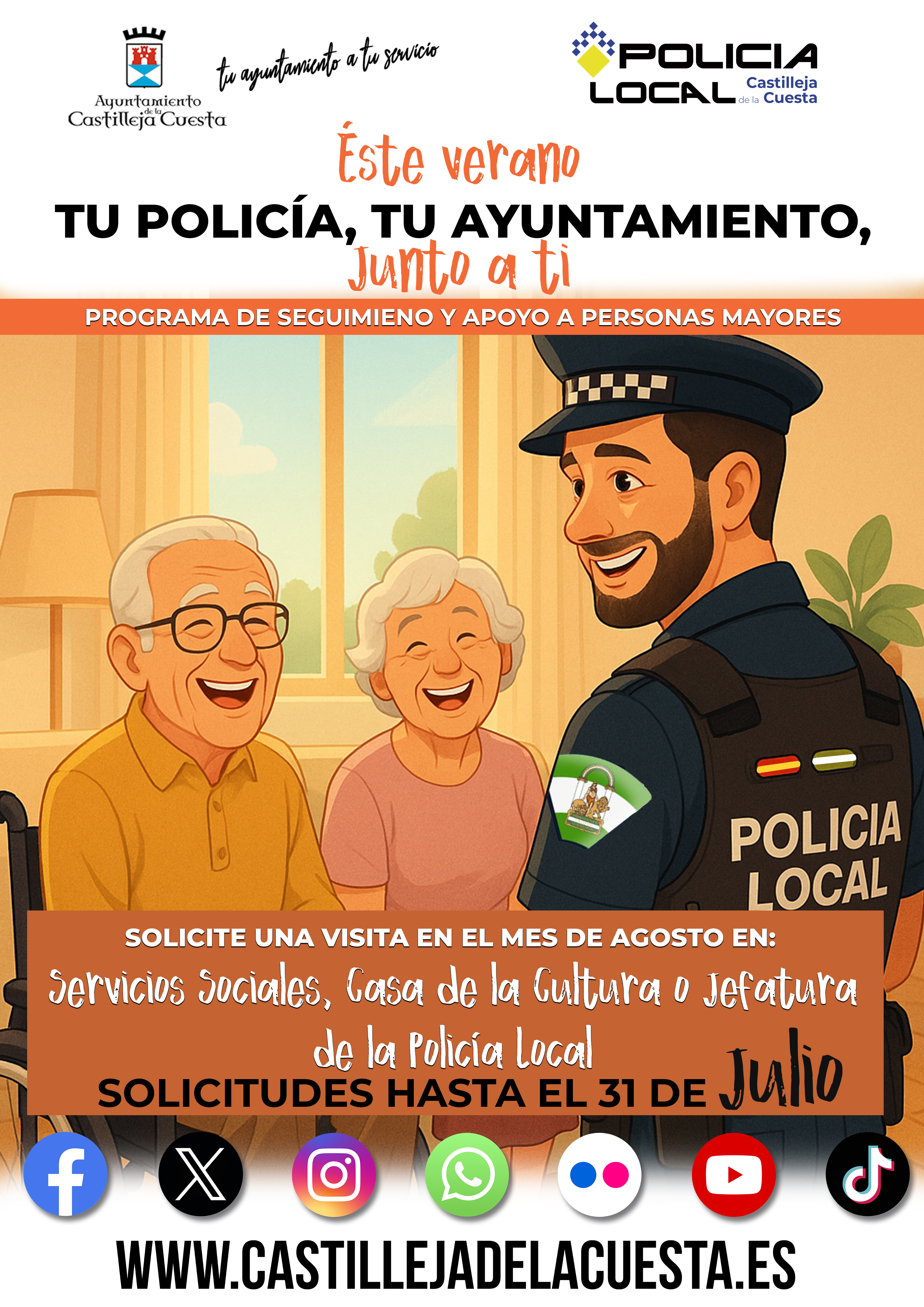 Un verano más, y ya van nueve, el Ayuntamiento impulsa el programa de seguimiento y apoyo a personas mayores, especialmente a aquellas que viven solas, durante el mes de agosto. Se trata de una iniciativa que cuenta con gran éxito de acogida entre el colectivo de mayores del municipio y que forma parte de las distintas medidas desarrolladas en torno a la campaña 'Verano Seguro' de la Policía Local. Cuenta también con el apoyo de Protección Civil.