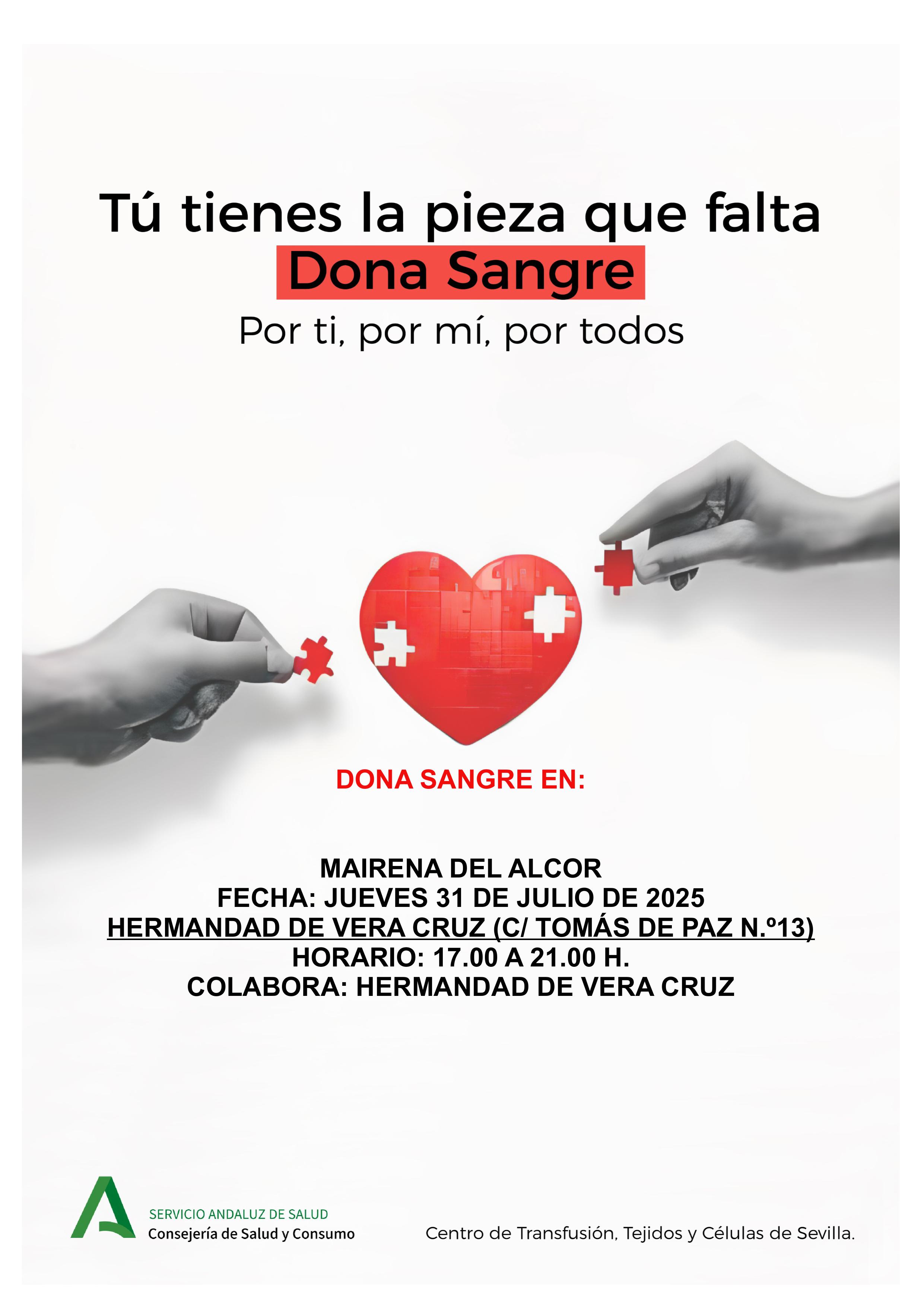 El Centro de Transfusión, Tejidos y Células de Sevilla organiza una campaña de donación de sangre extraordinaria en la casa hermandad de la Vera Cruz (calle Tomás de Paz, 13) el jueves 31 de julio de 17 a 21 horas, porque en verano bajan las reservas y los hospitales siguen necesitando sangre.