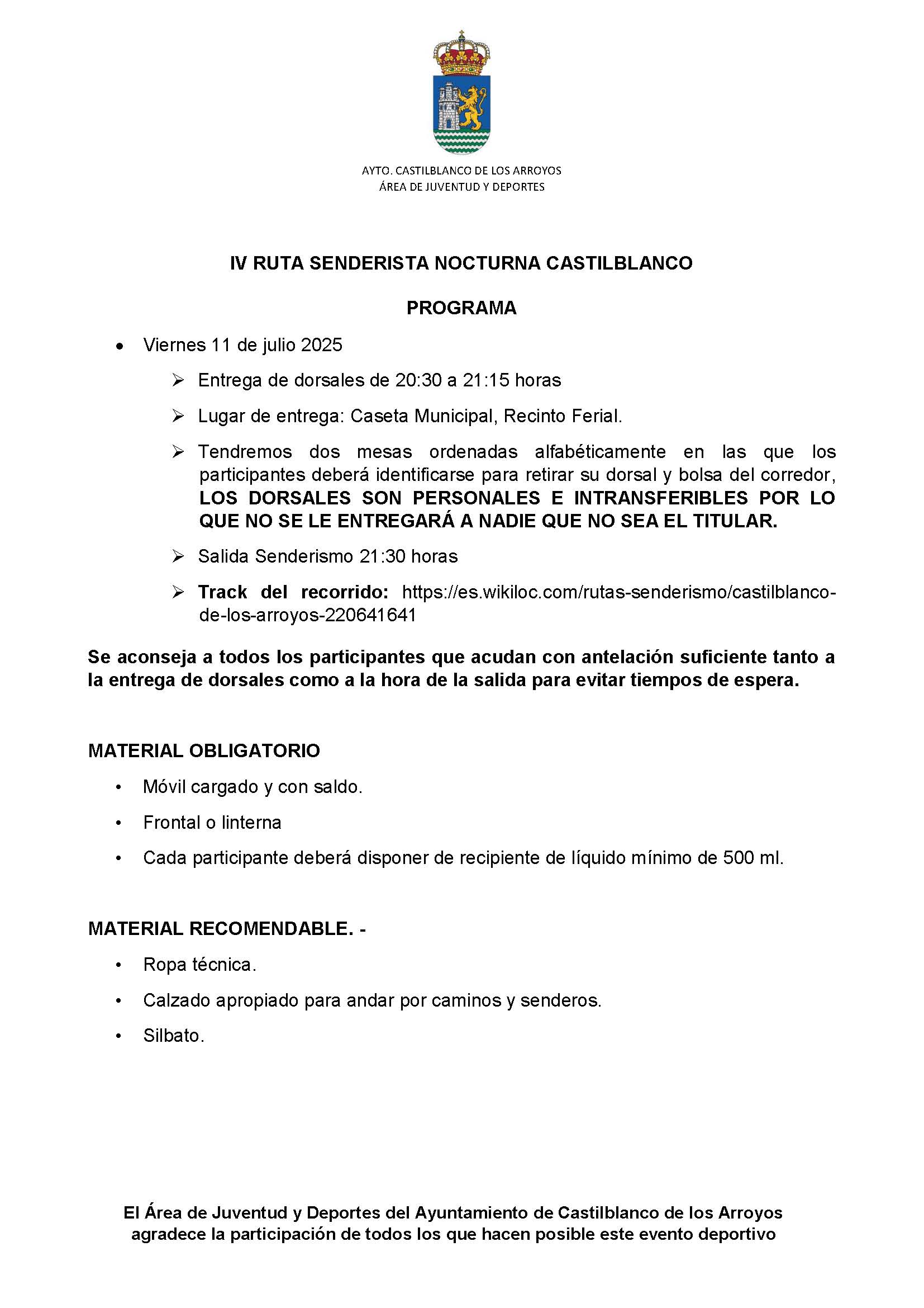 Con todas las plazas ya cubiertas, esta noche Castilblanco da el pistoletazo de salida a las actividades deportivas del verano con la celebración de la IV Ruta Senderista Nocturna.